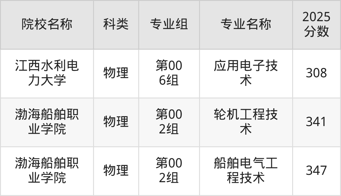 2025年在黑龙江定向士官录取分数线主要位于341分-347分之间,物理类最低分341分,对应最低分专业是第002组的轮机工程技术专业。最高分定向士官专业是船舶电气工程技术,2025年录取分数线为347分。