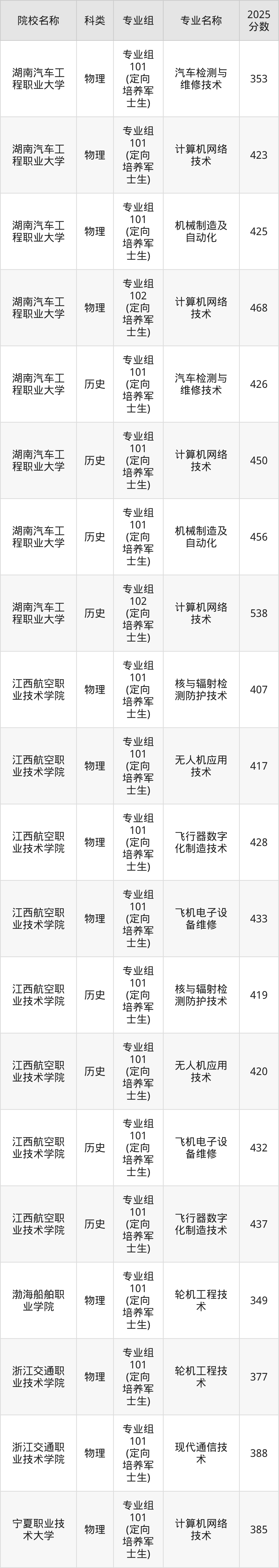 更多院校分数可在2025年四川定向士官录取分数线一览表中查询: