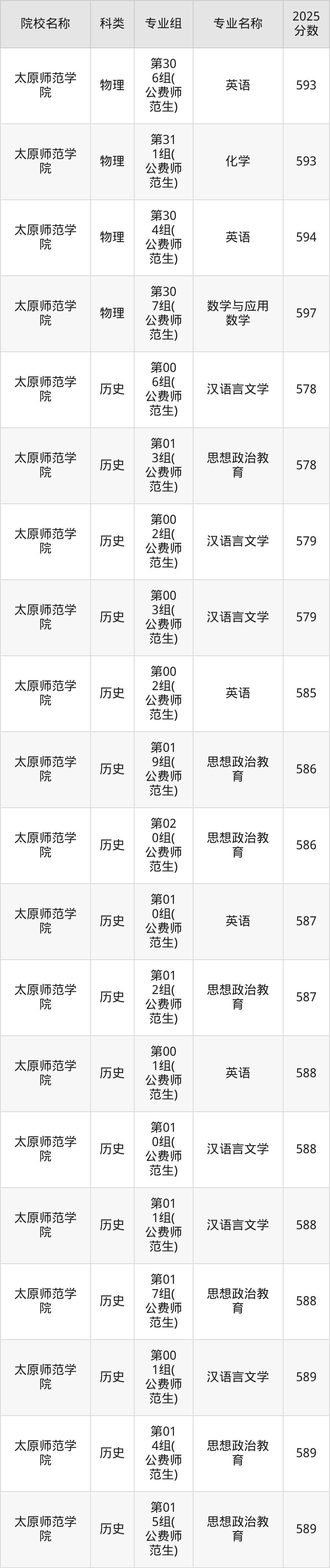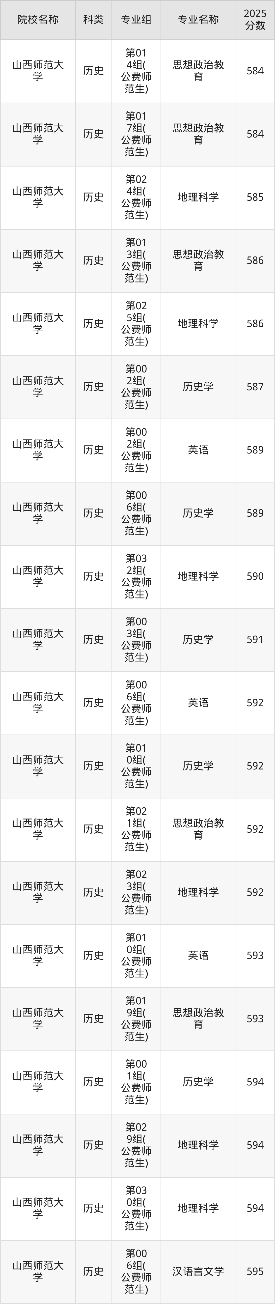 更多院校分数可在2025年山西地方公费师范生录取分数线一览表中查询: