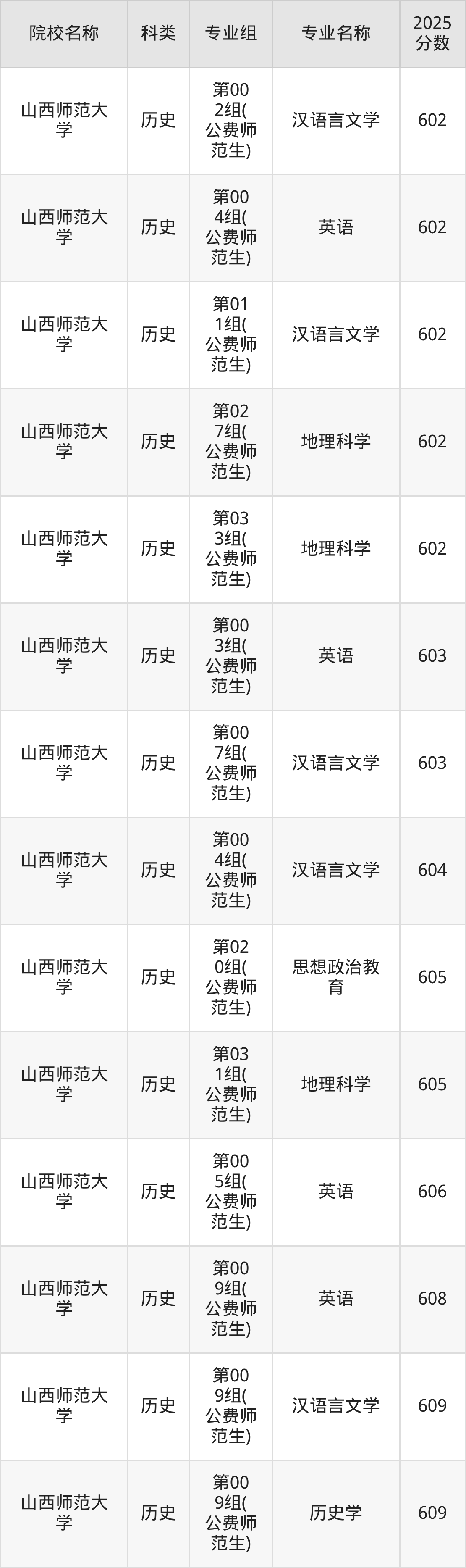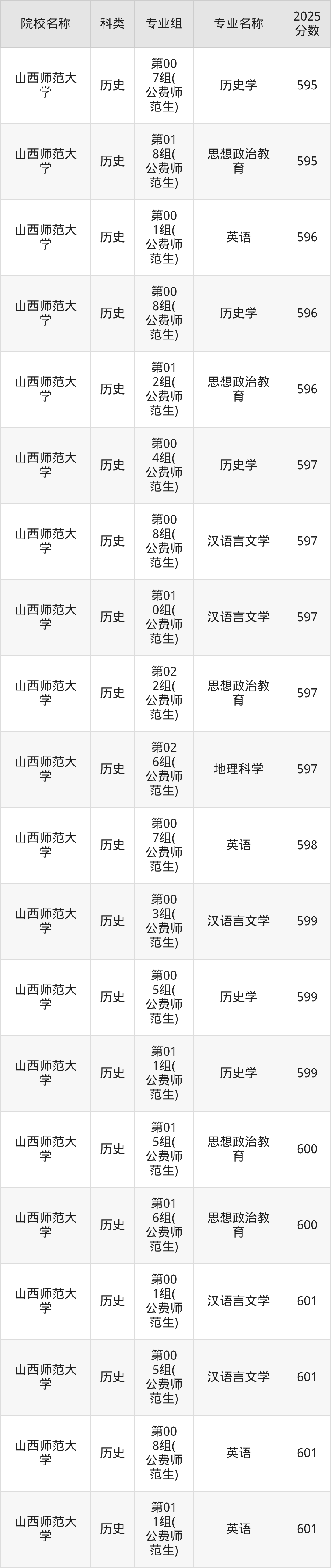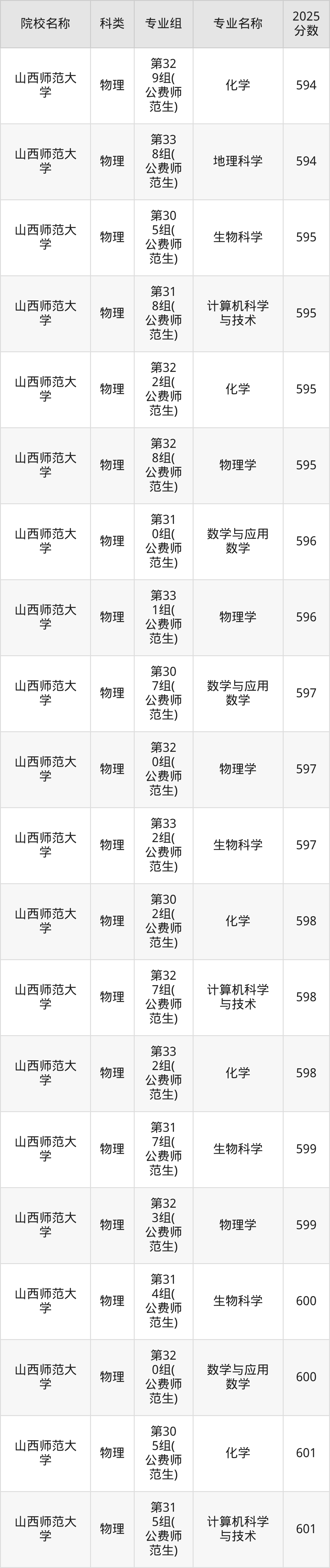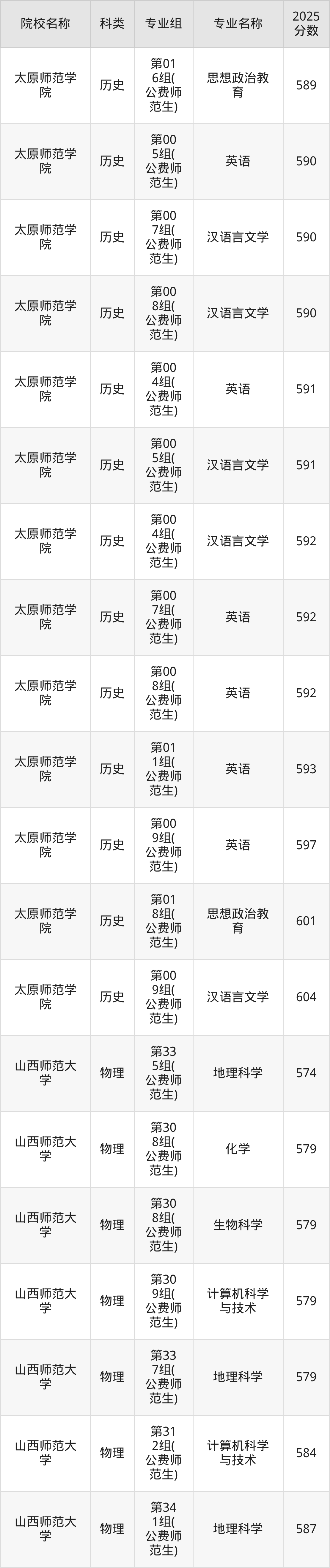 院校最低分非专业最低分,2026届考生可在下文查阅更多专业分数详情以及山西地方公费师范生学校名单。