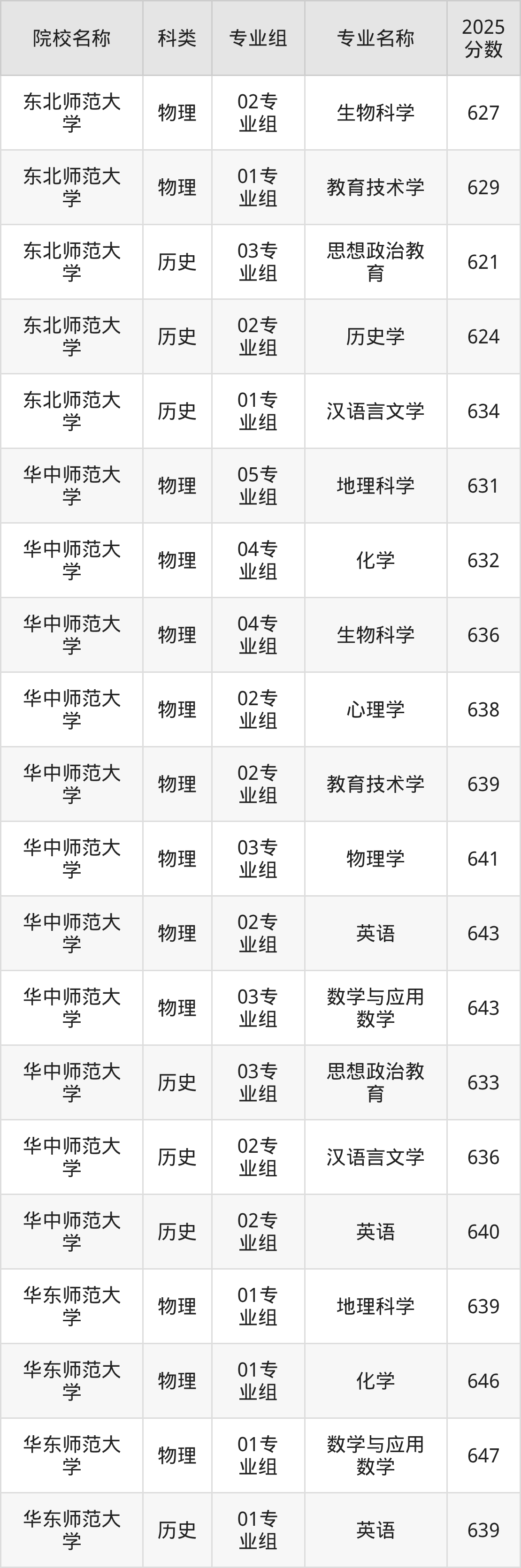 3、华东师范大学:最低639分