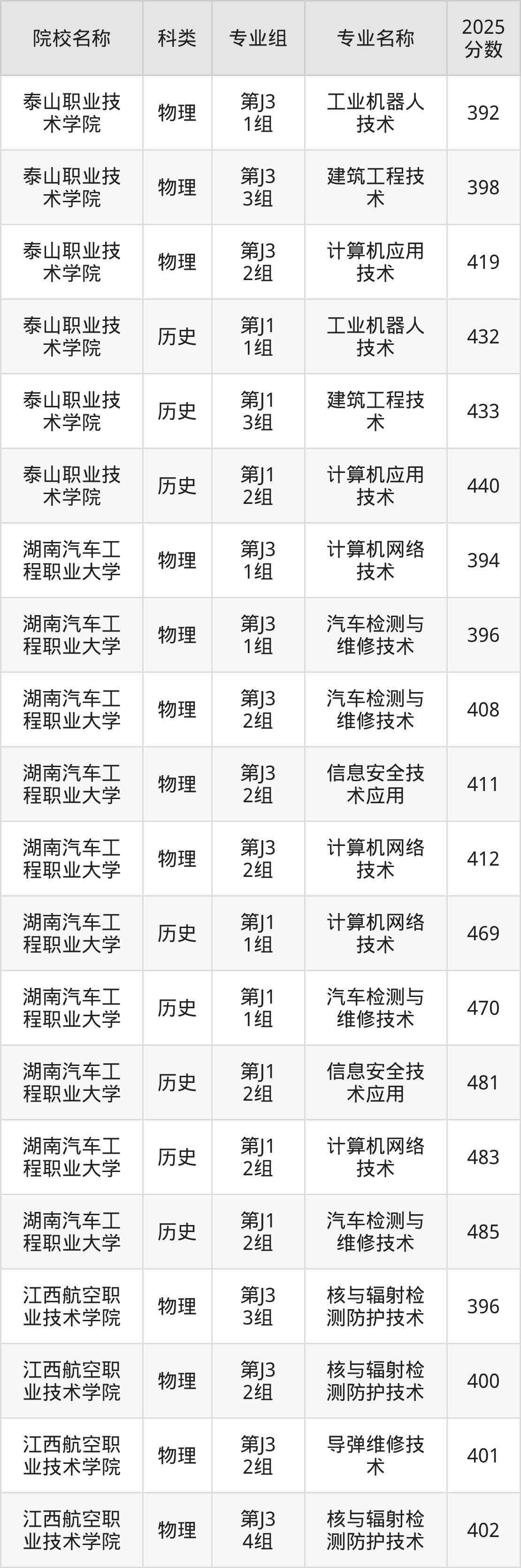1、泰山职业技术学院:最低392分