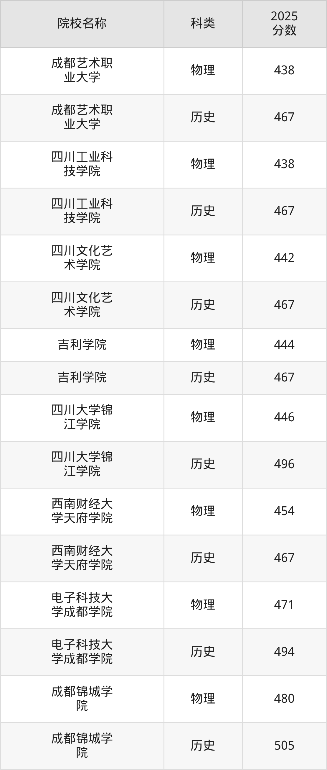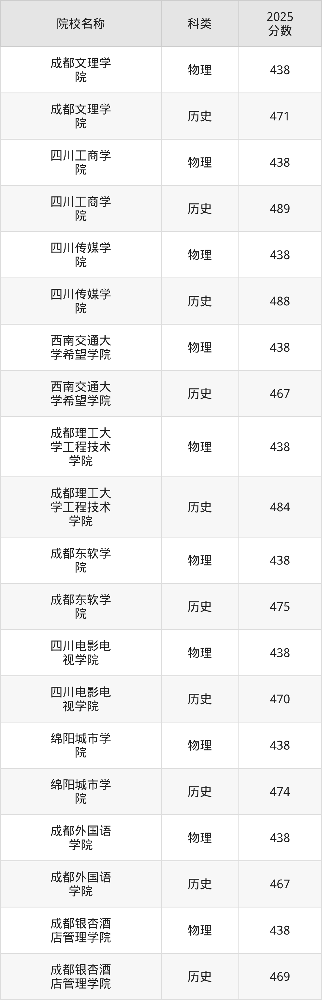 更多院校分数可在2025年四川民办本科录取分数线一览表中查询(数据较多,这里仅列举各校各科类最低分):