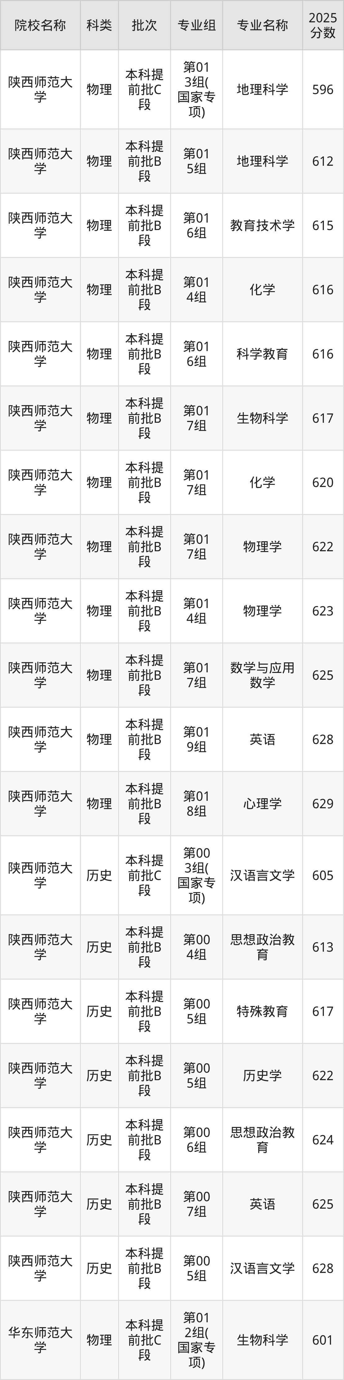 1、陕西师范大学:最低596分