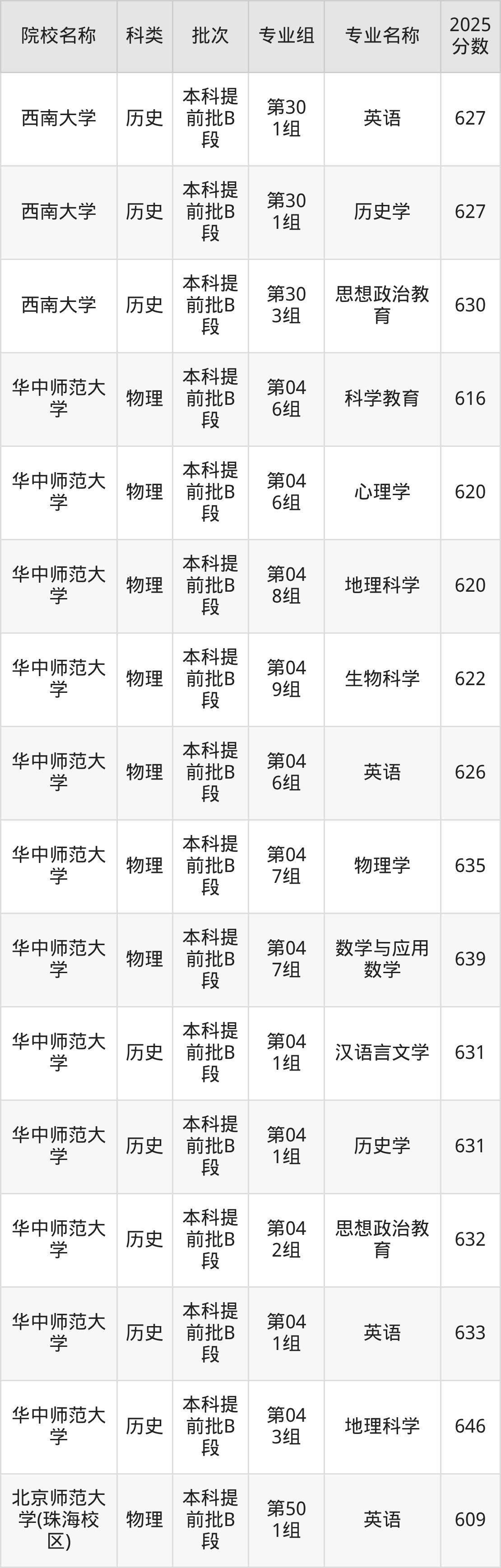 6、华中师范大学:最低616分