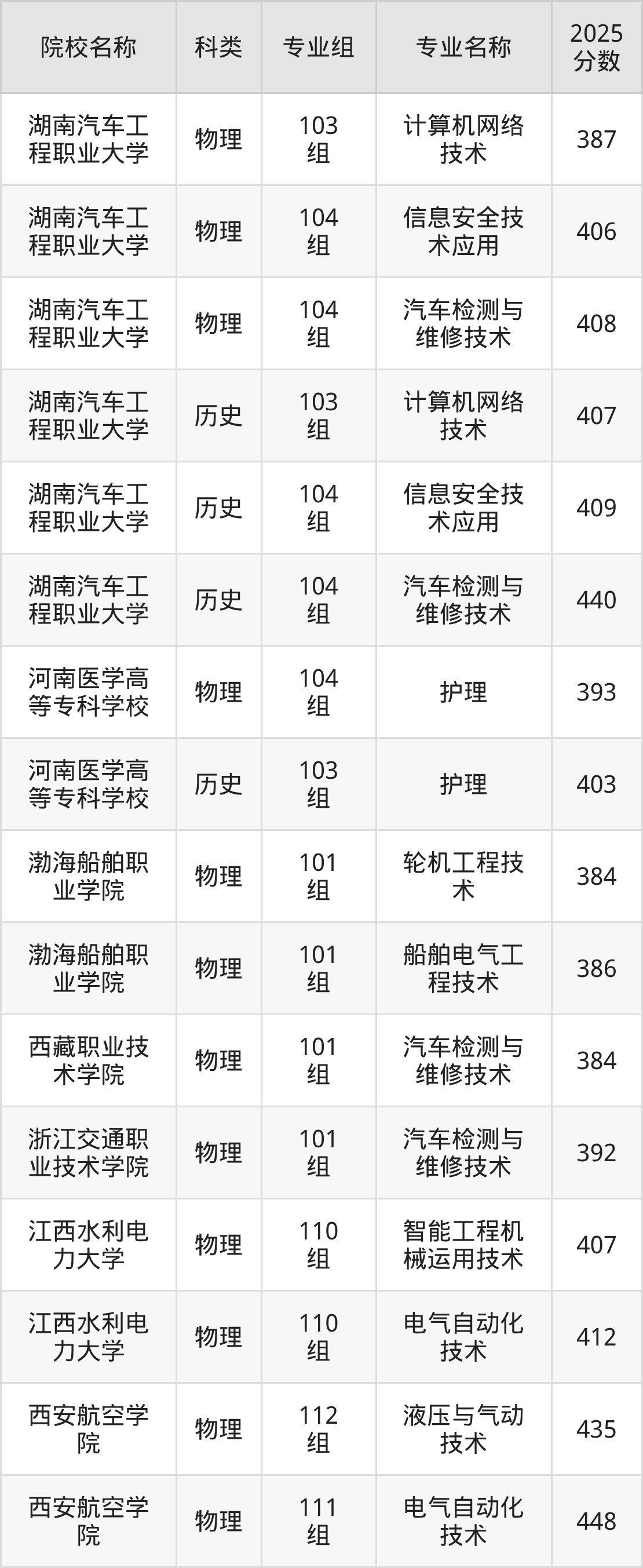 2025年陕西定向士官各校录取分数线如下:湖南汽车工程职业大学最低387分、河南医学高等专科学校最低393分、渤海船舶职业学院最低384分、西藏职业技术学院最低384分、浙江交通职业技术学院最低392分等。