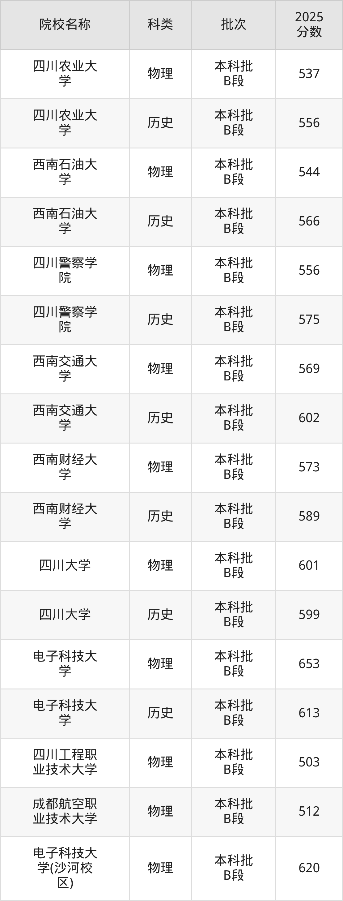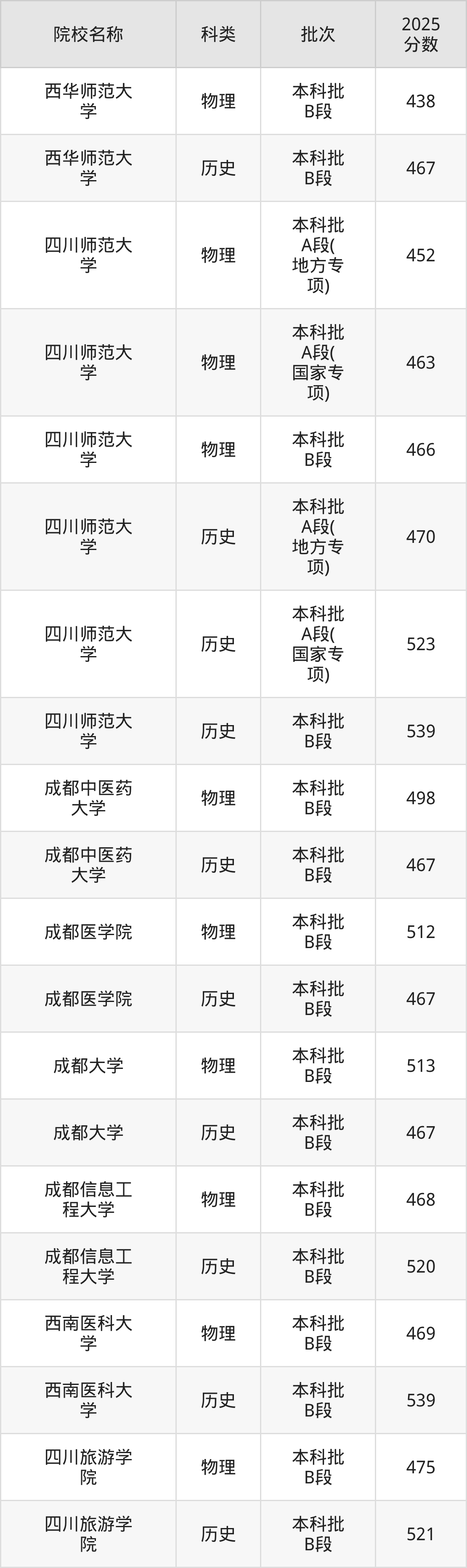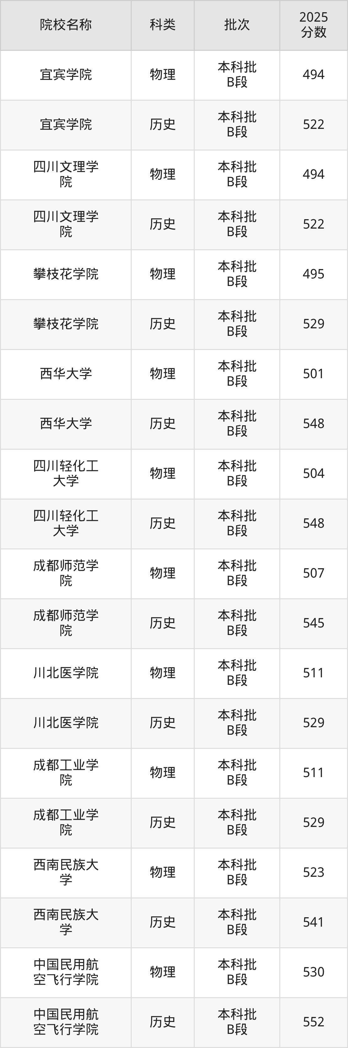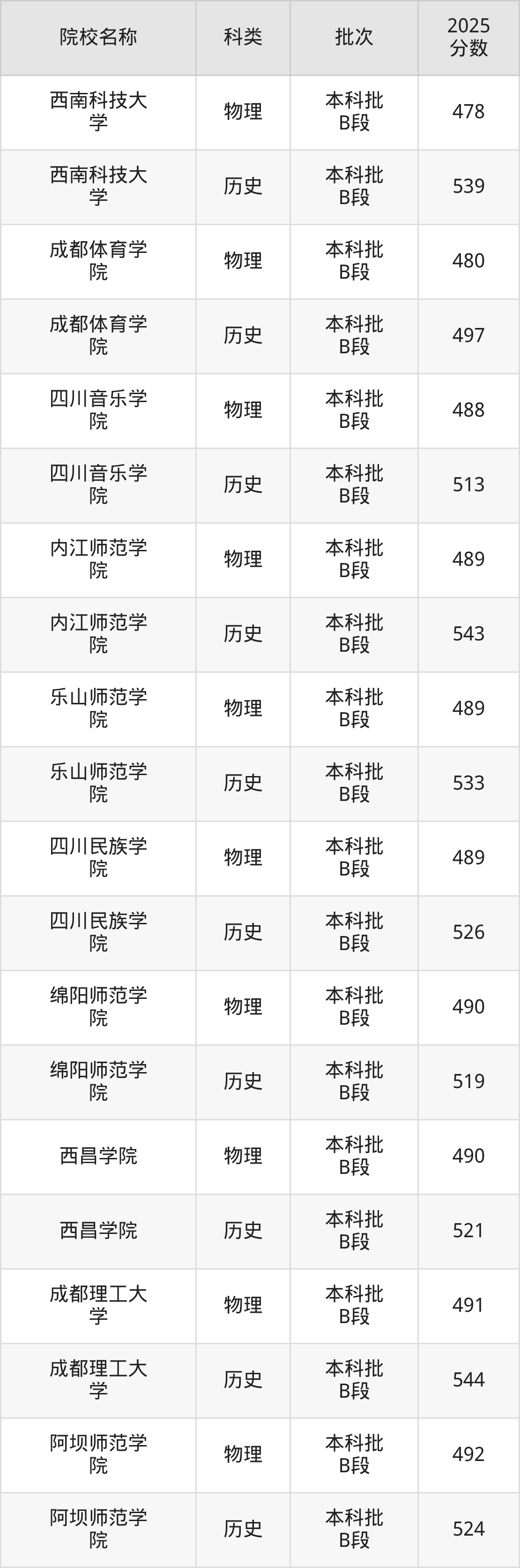 更多院校分数可在2025年四川公办本科录取分数线一览表中查询(数据较多,这里仅列举各校各科类最低分):