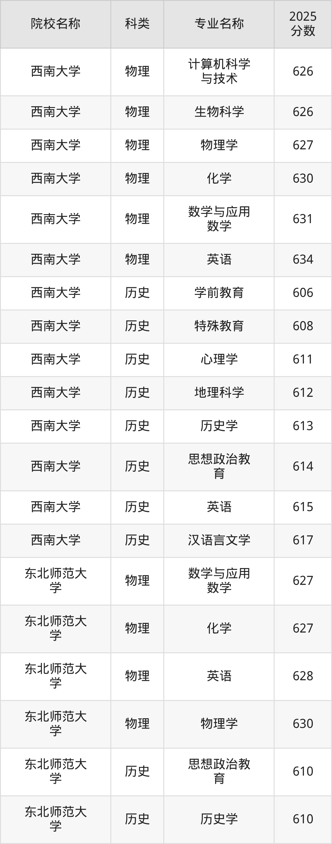 更多院校分数可在2025年重庆国家公费师范生录取分数线一览表中查询: