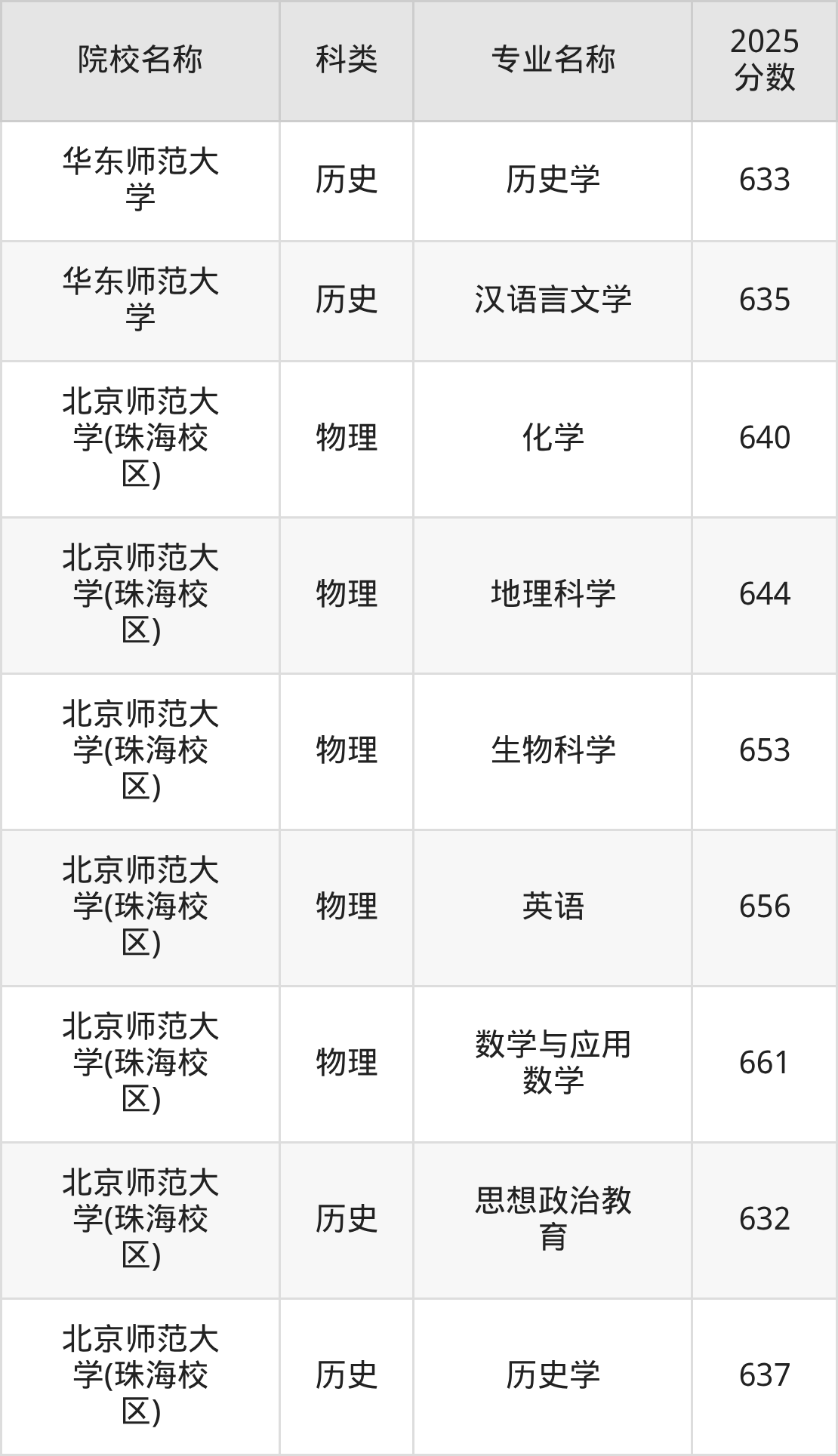 2025年在重庆国家公费师范生录取分数线主要位于632分-661分之间,物理类最低分640分,对应最低分专业是化学专业;历史类最低分632分,对应最低分专业是思想政治教育专业。