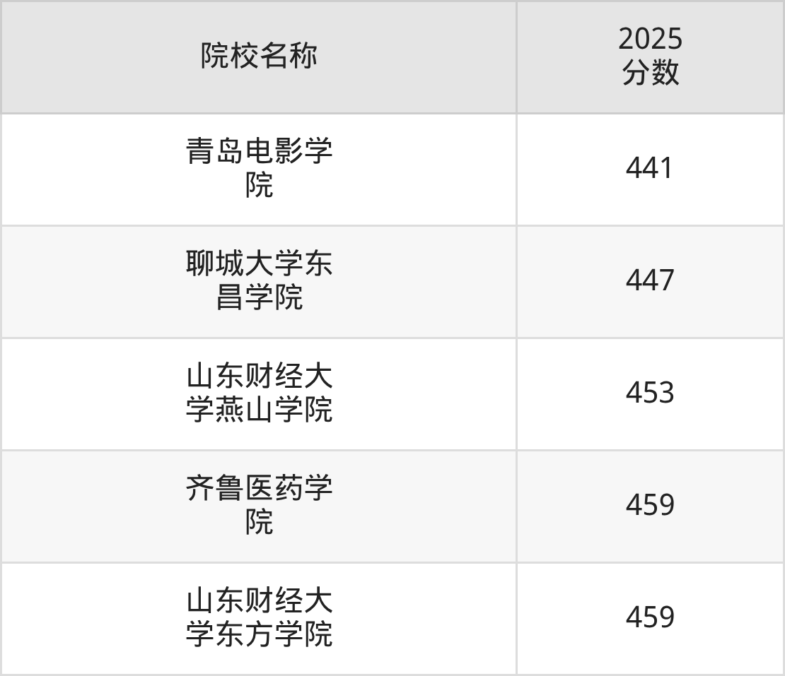 更多院校分数可在2025年山东民办本科录取分数线一览表中查询(数据较多,这里仅列举各校最低分):