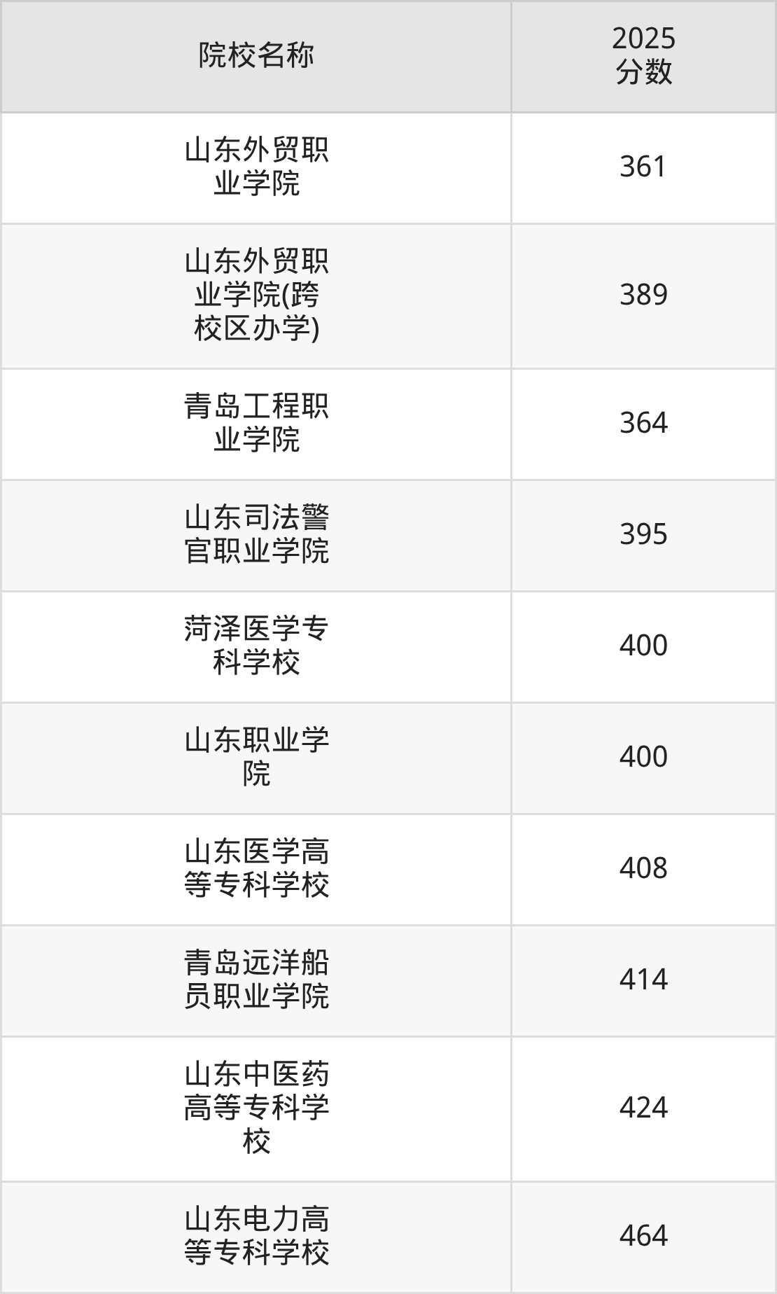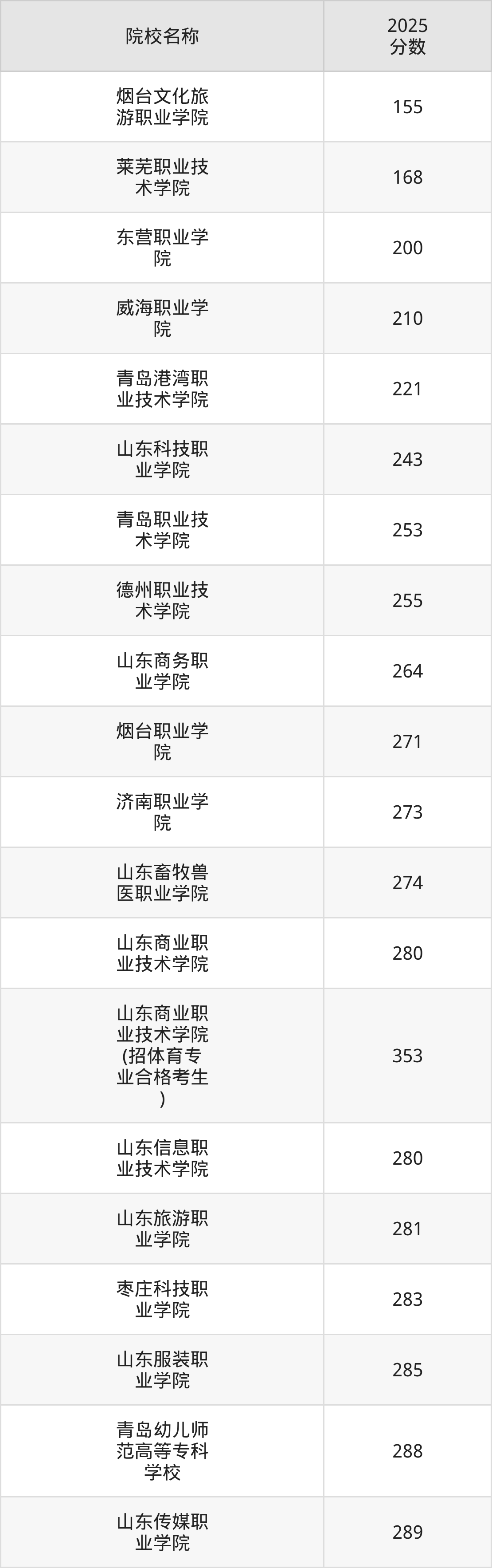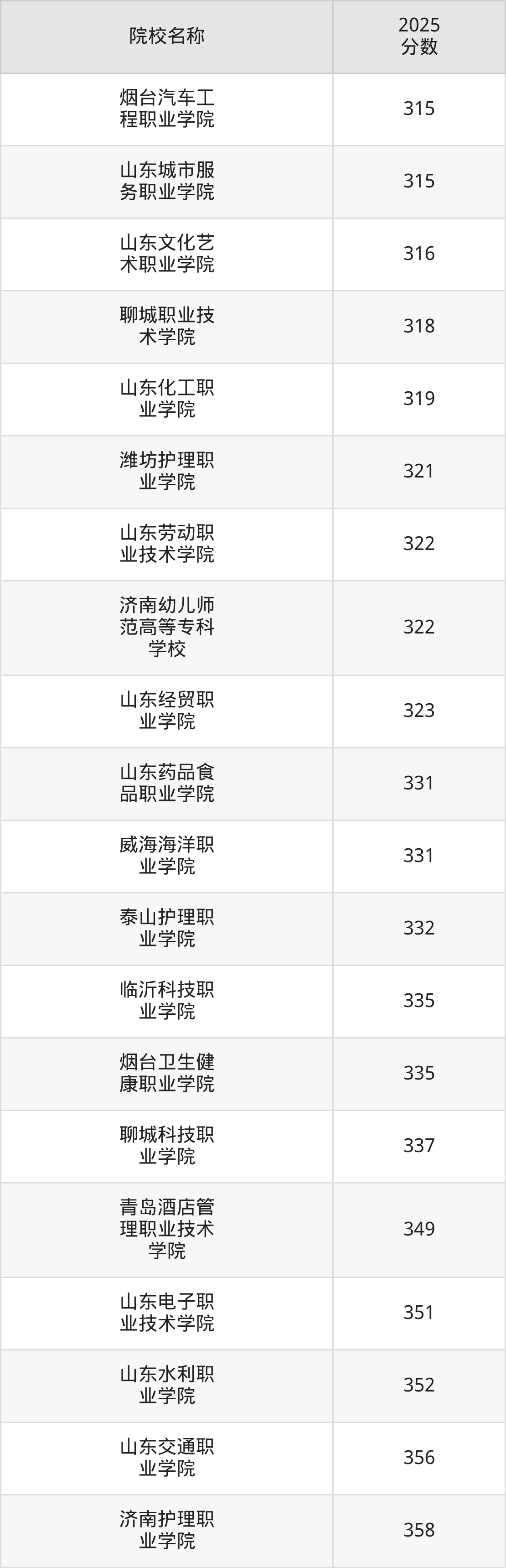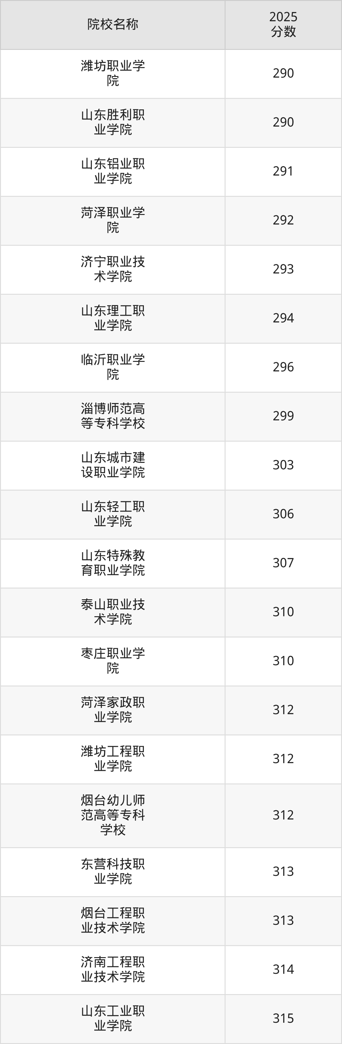 更多院校分数可在2025年山东公办大专录取分数线一览表中查询(数据较多,这里仅列举各校最低分):