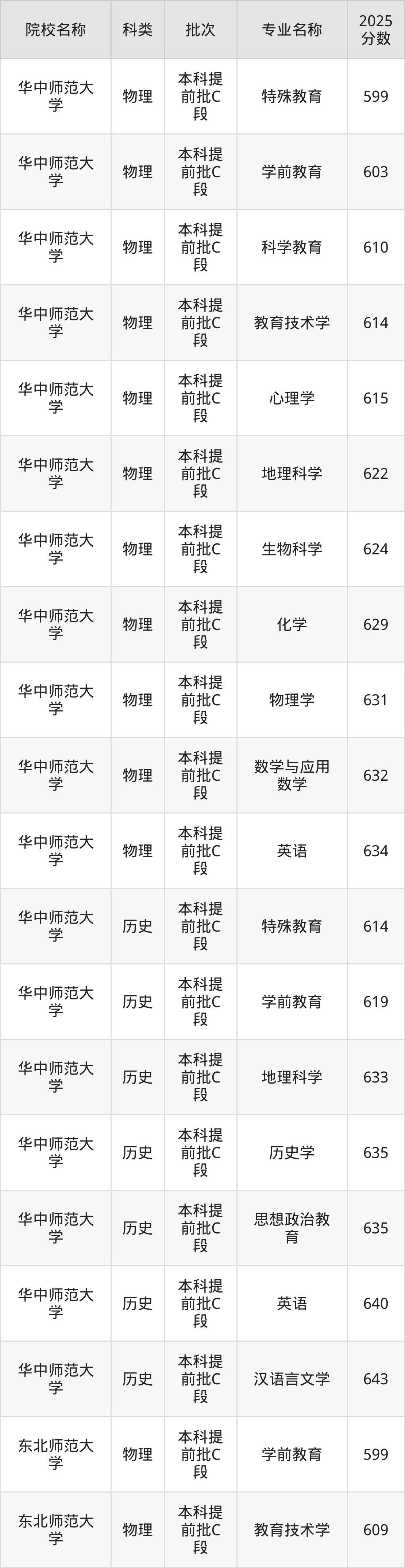 1、华中师范大学:最低599分