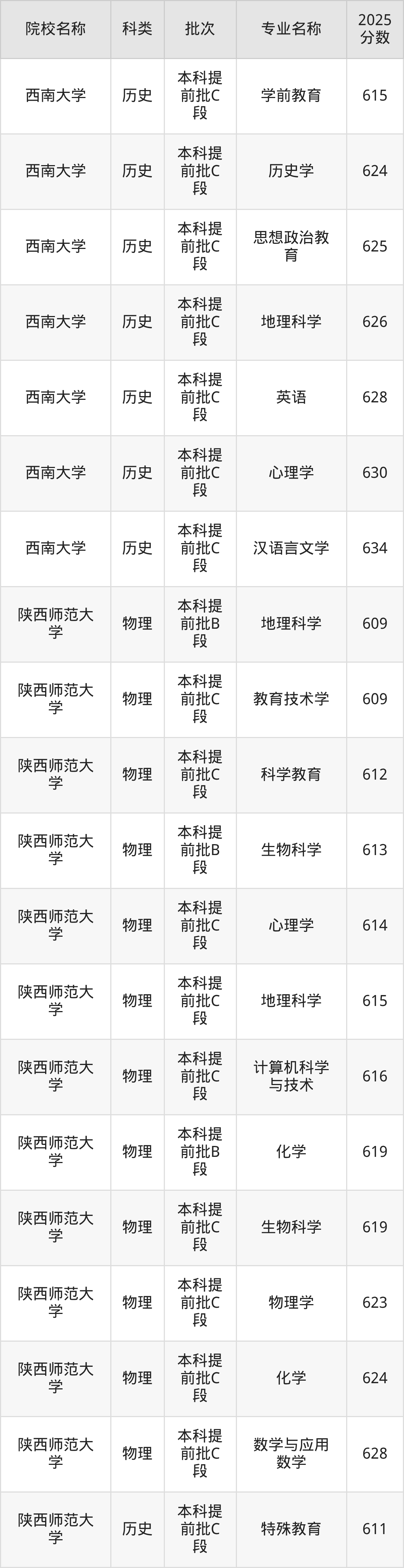 4、陕西师范大学:最低609分