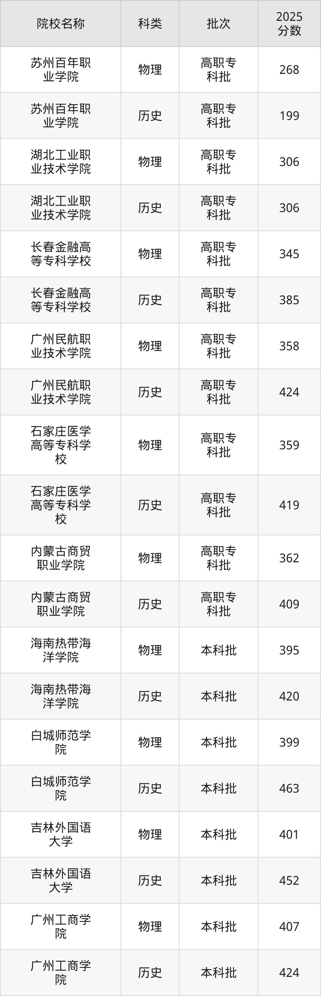 2025年内蒙古中外合作办学各校录取分数线如下:苏州百年职业学院最低199分、湖北工业职业技术学院最低306分、长春金融高等专科学校最低345分、广州民航职业技术学院最低358分、石家庄医学高等专科学校最低359分等。