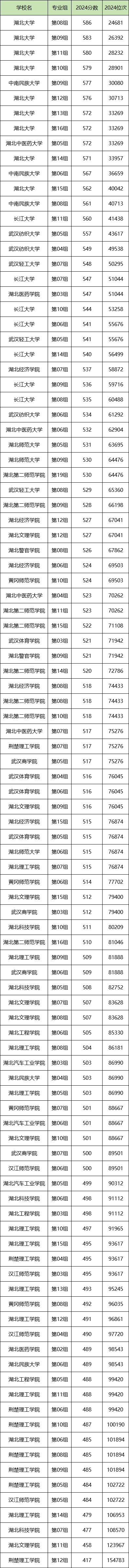 2024年湖北公办二本大学在物理类的录取分数线位于417分~586分之间(不含普通考生无法报考的特殊专业)。