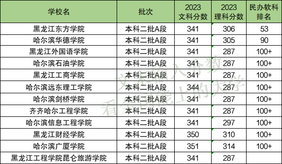 下表为黑龙江省所有民办学校分数线及全国排名。