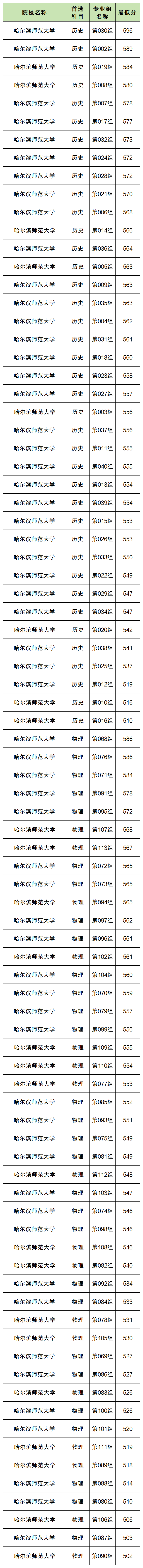 2、哈尔滨师范大学2025年最低分:物理类是502分、历史类是510分。