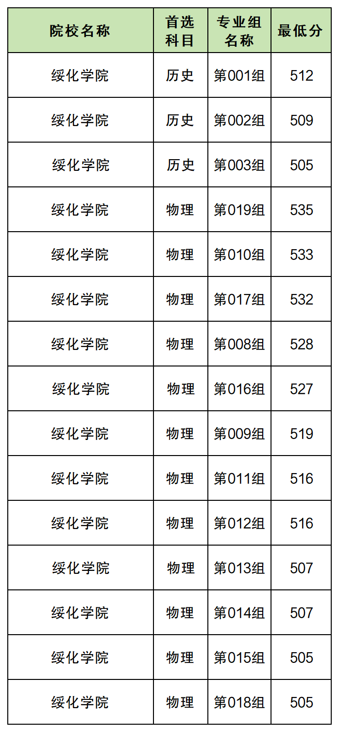 8、绥化学院2025年最低分:物理类是505分、历史类是505分。