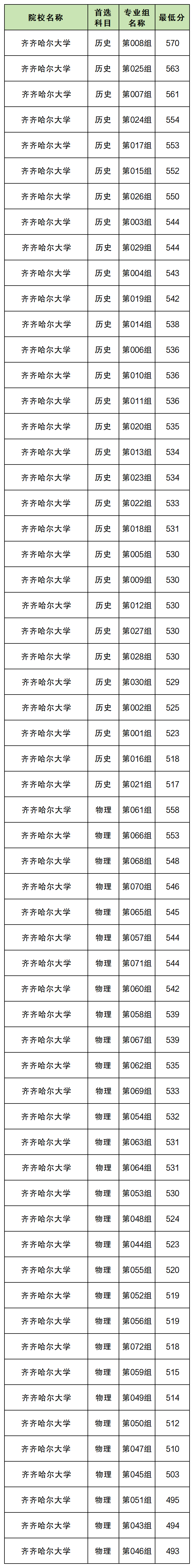 7、齐齐哈尔大学2025年最低分:物理类是493分、历史类是517分。