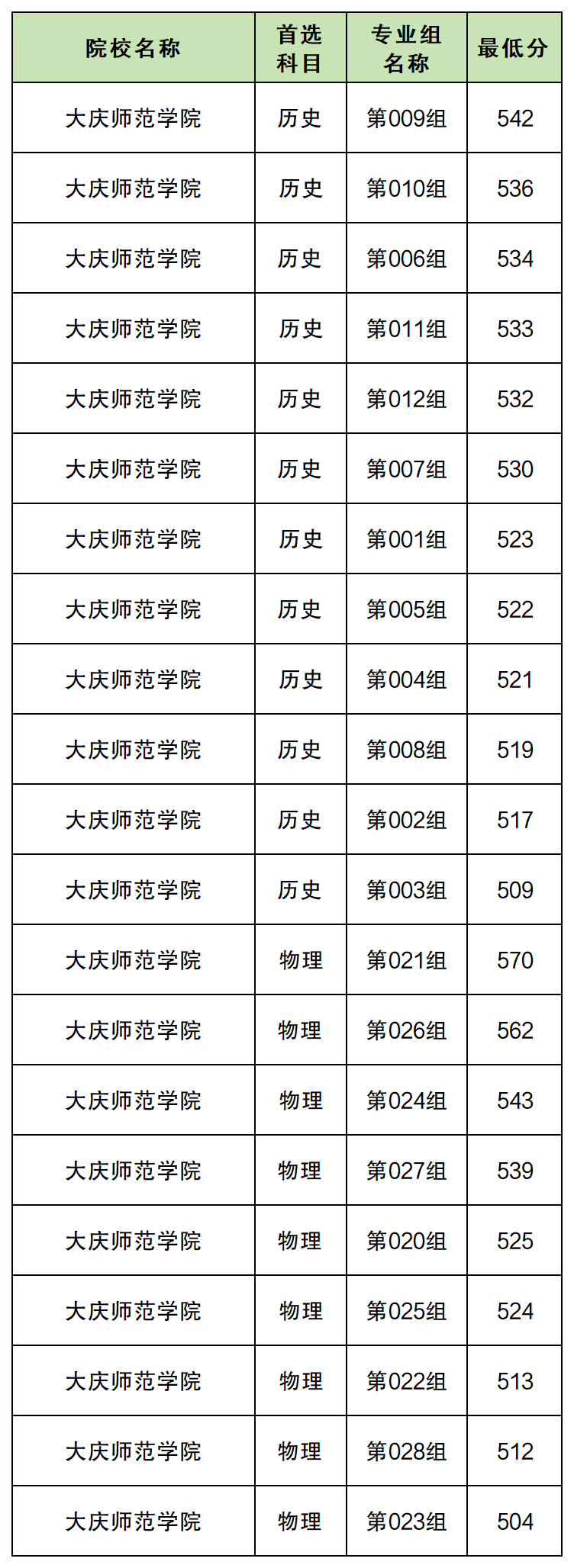 1、大庆师范学院2025年最低分:物理类是504分、历史类是509分。