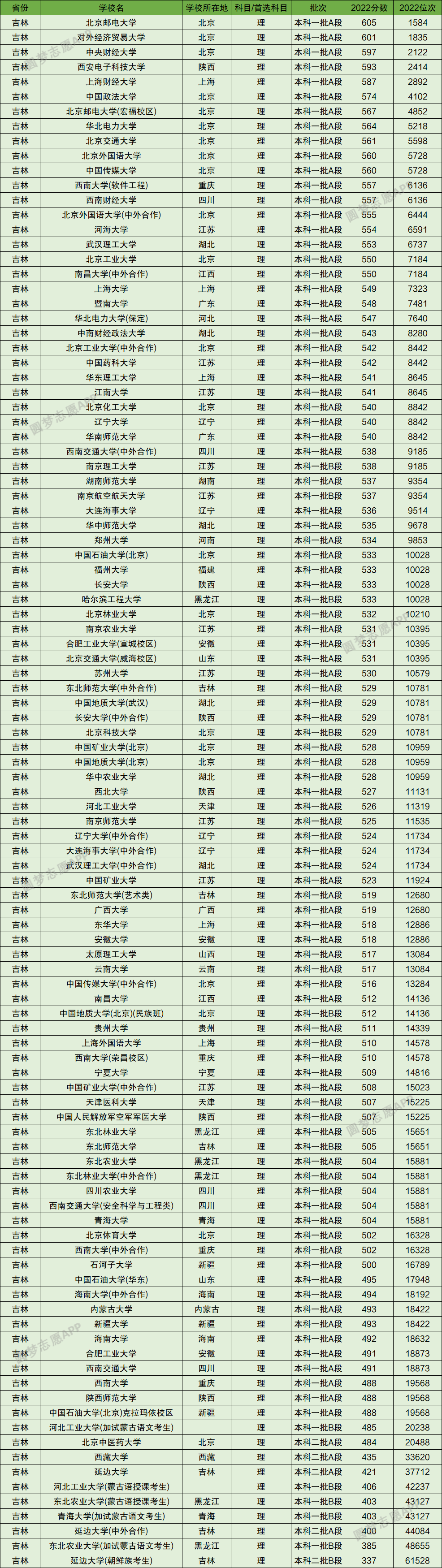 理科收分最低的是延边大学(朝鲜族考生),其2022年最低分为337分(超吉林理科二本线10分),录取位次为61528位。