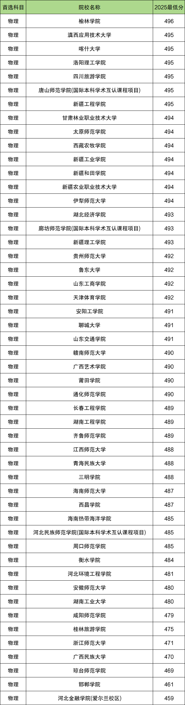 | 院校名称 | 2025 最低分 |
