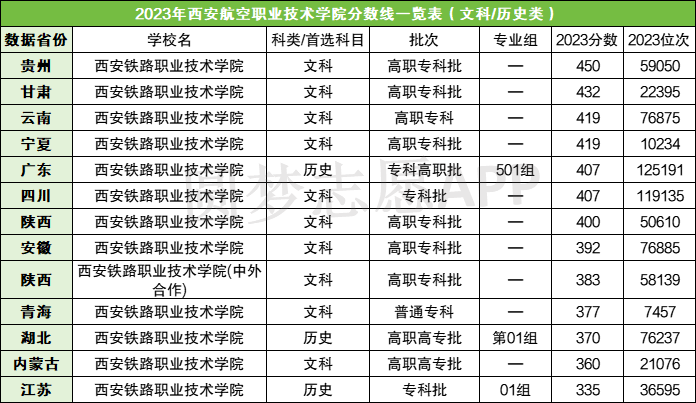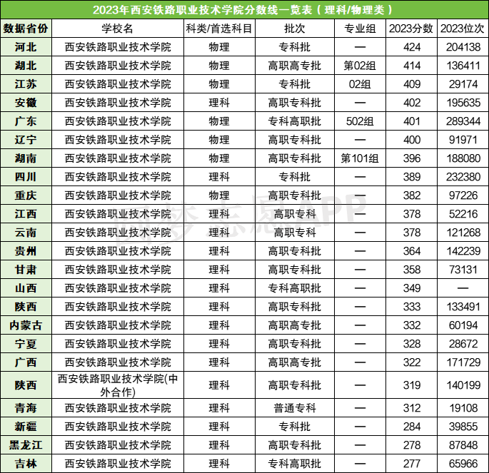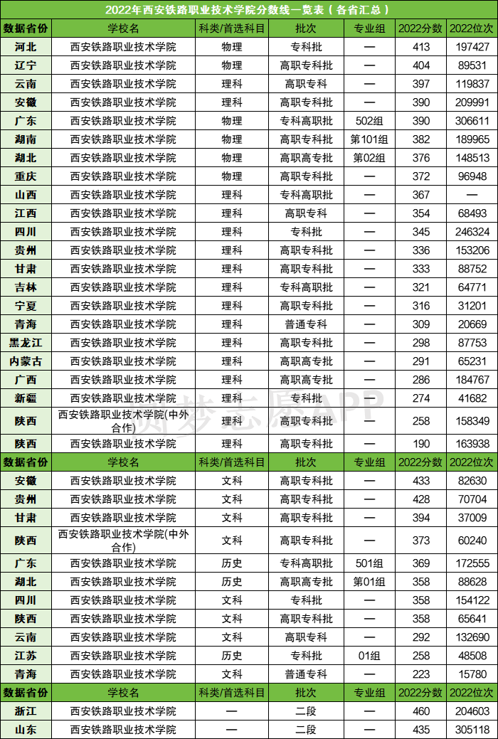 为了方便同学们进行分数线的参考,在此还整理了西安铁路职业技术学院2022年在部分省市的录取分数线,详情如下: