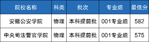 2024年安徽省的580分左右(575-585分)能上的警校一共有4所,均为本科提前批录取的院校。