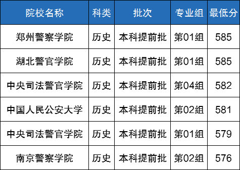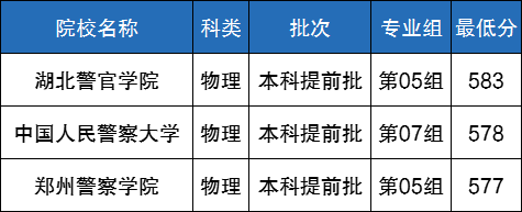 2024年湖北省的580分左右(575-585分)能上的警校一共有6所,均为本科提前批录取的院校。