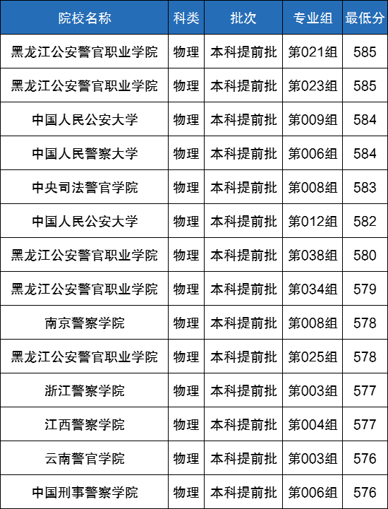 2024年黑龙江省的580分左右(575-585分)能上的警校一共有9所,均为提前本科批次录取的院校。