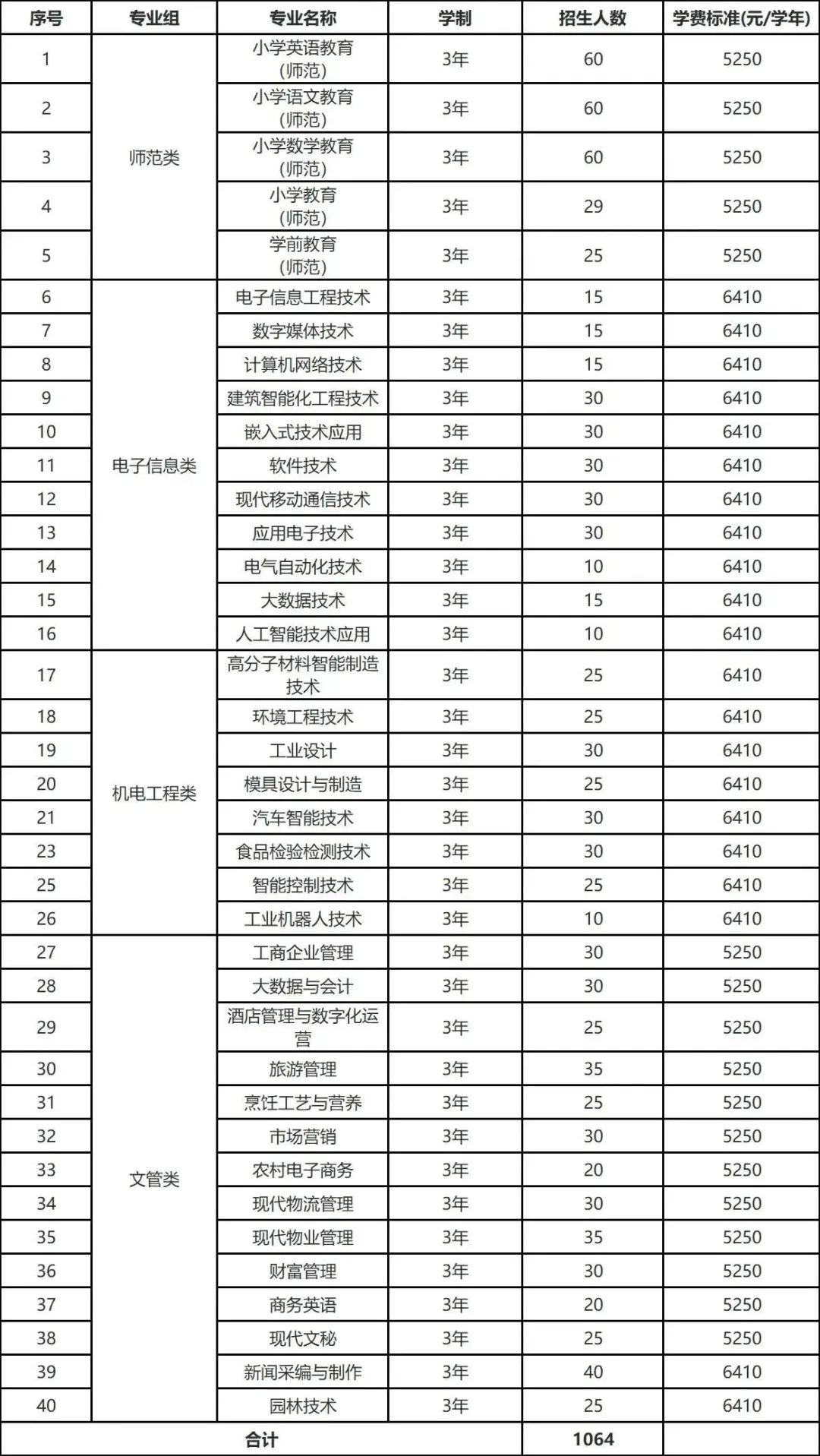 2023年春季高考开设54个招生专业,6000个计划,其中3+证书计划数2000个,学业水平(普通类)计划数4000个。