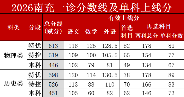 2、2026南充一诊分数线
