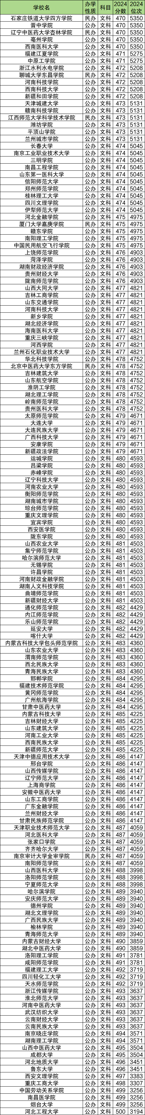 录取分数线为470分的二本大学为:石家庄铁道大学四方学院、晋中学院、辽宁中医药大学杏林学院、亳州学院、西南医科大学。