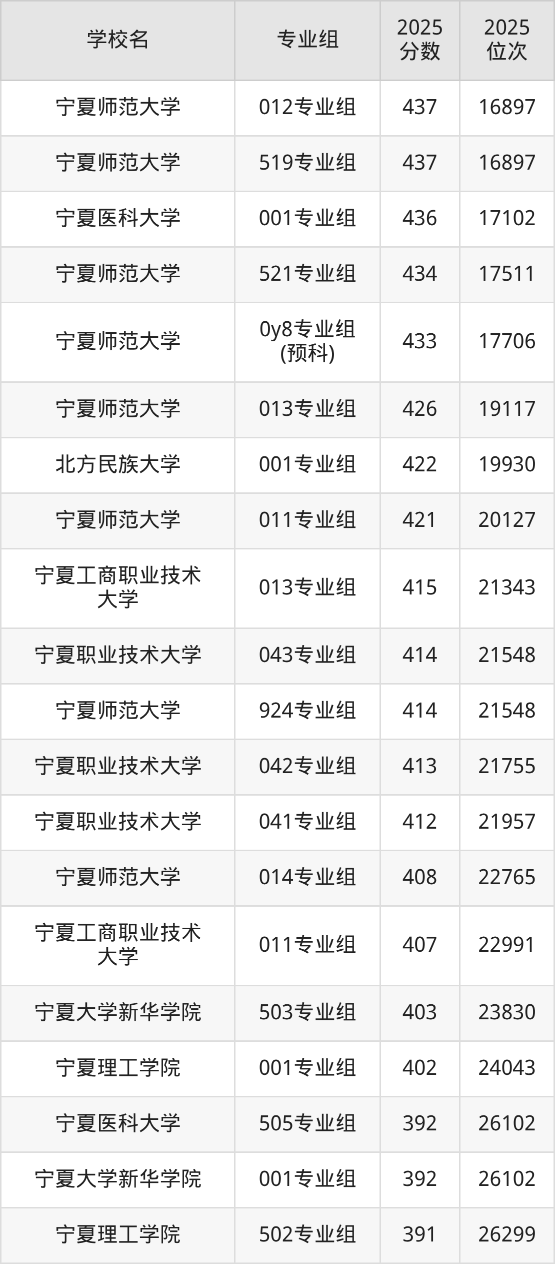 一、宁夏二本大学排名表