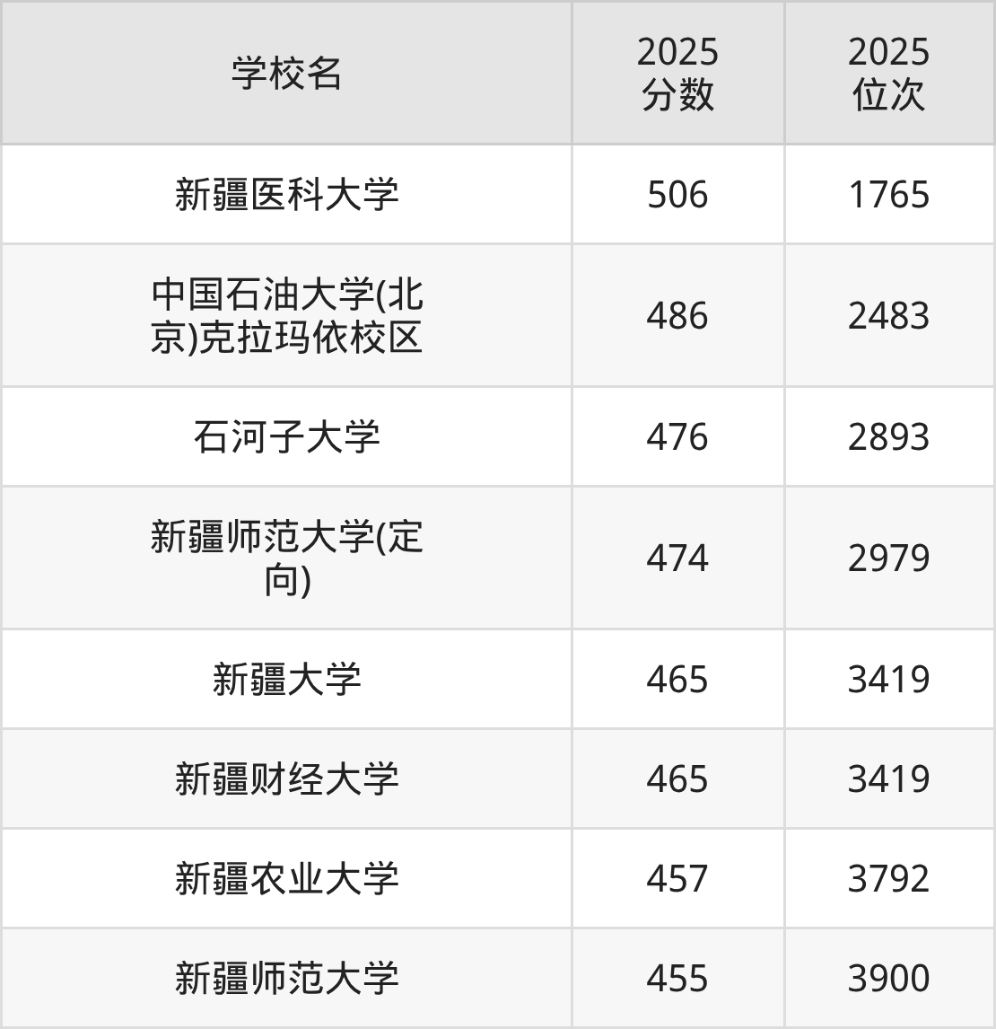 一、新疆一本大学排名表