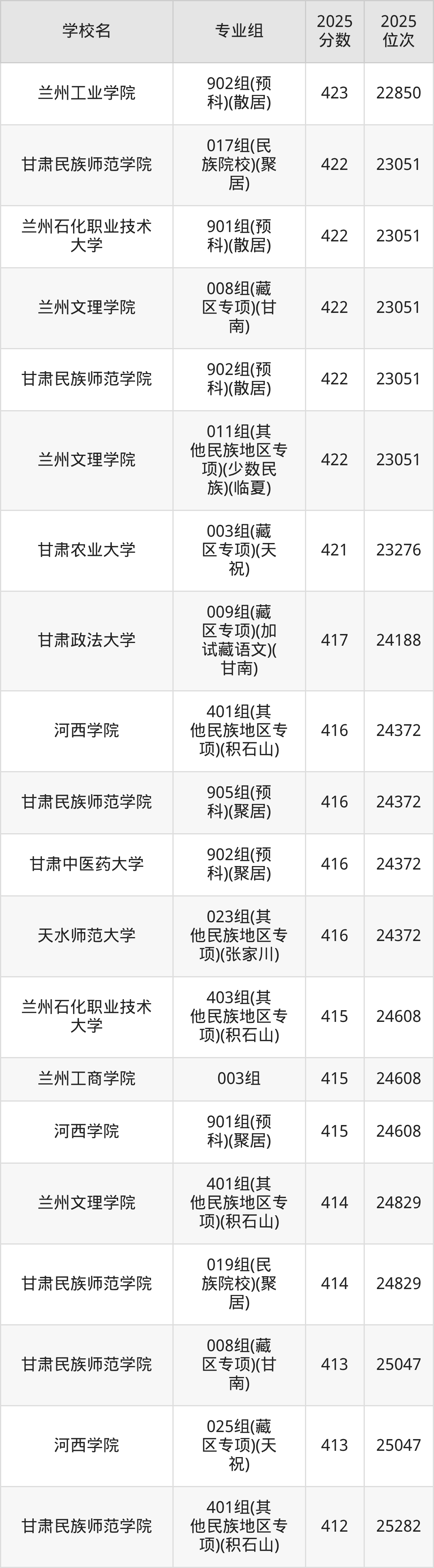 | 兰州工业学院 | 416 |