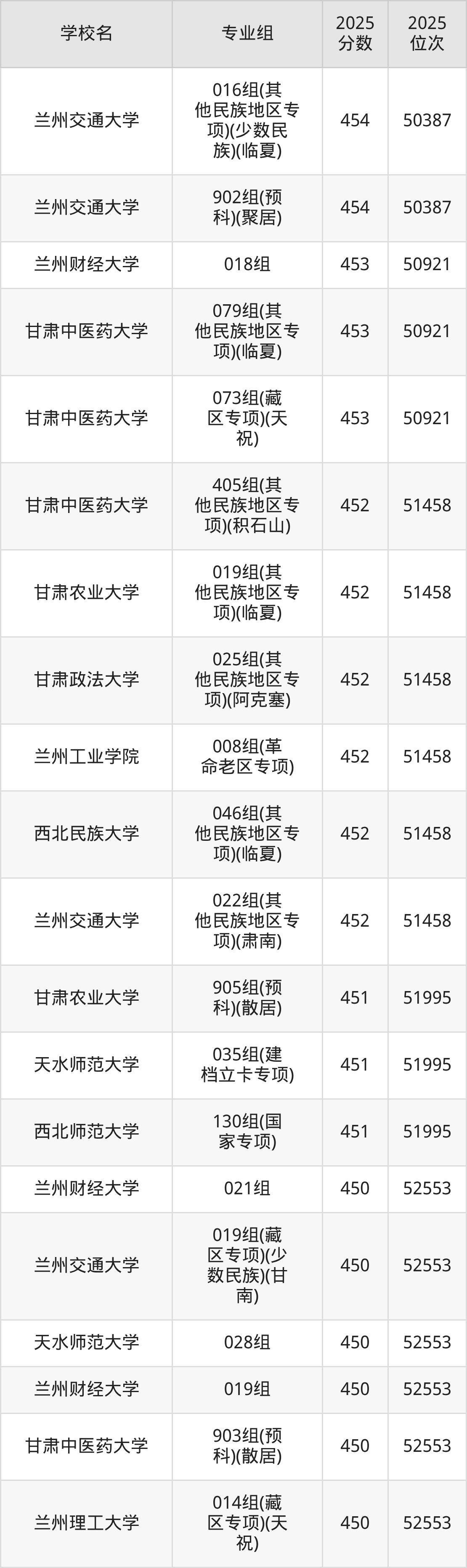 二、甘肃本科大学录取分数线
