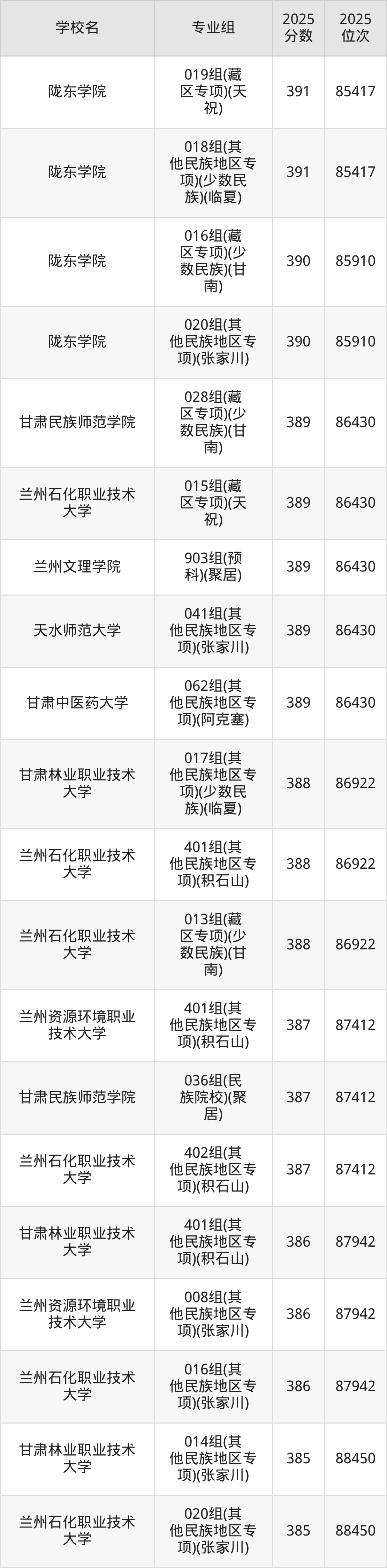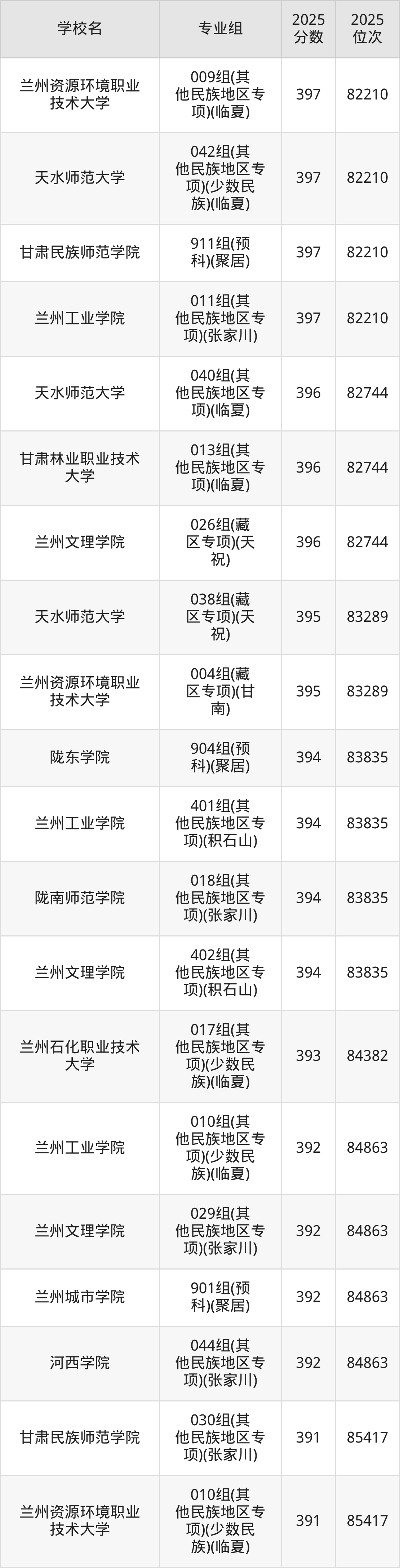 | 兰州文理学院 | 382 |