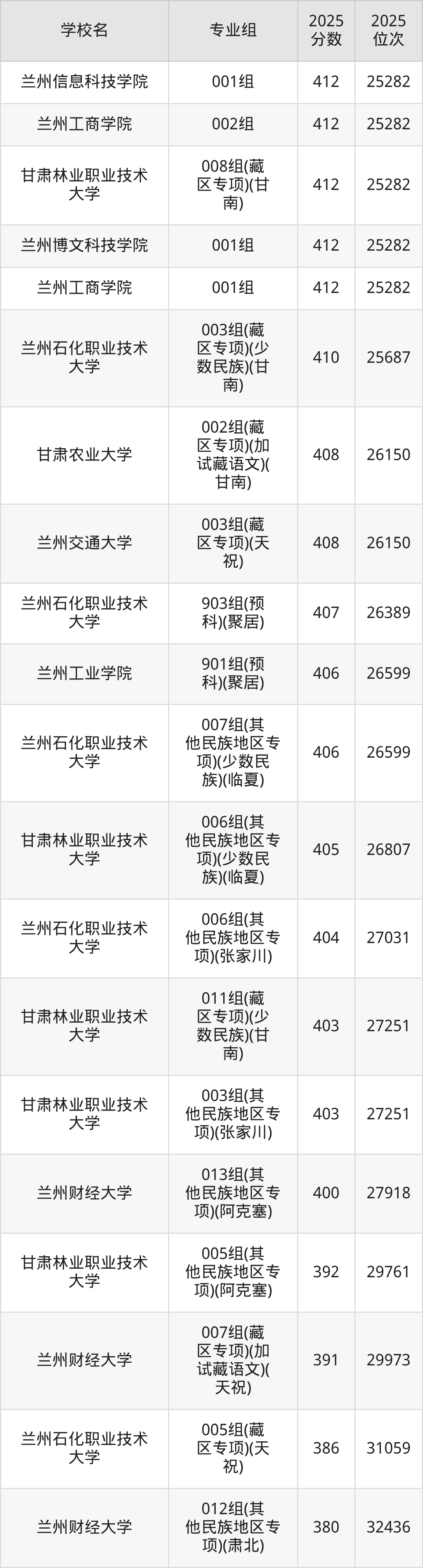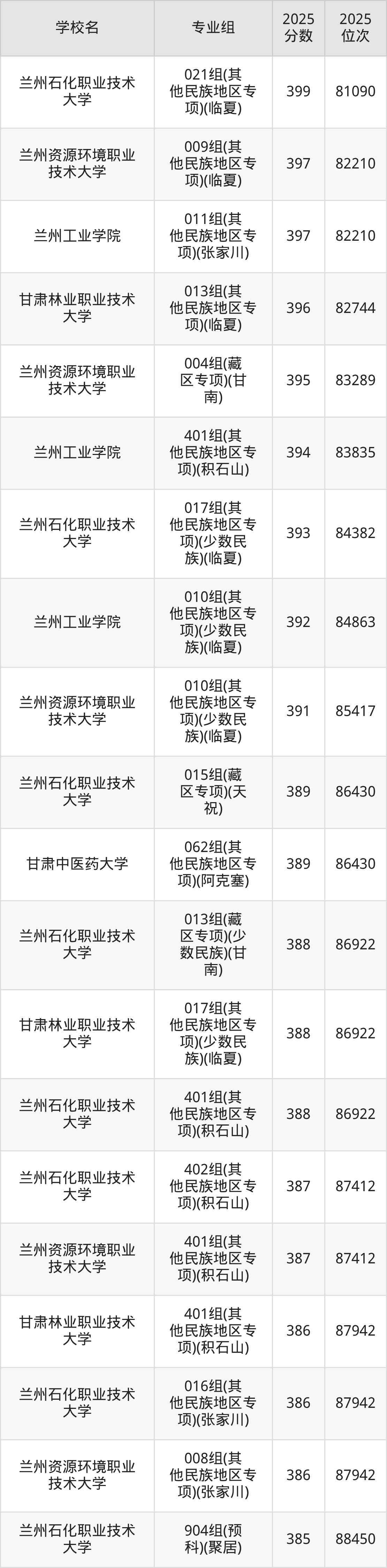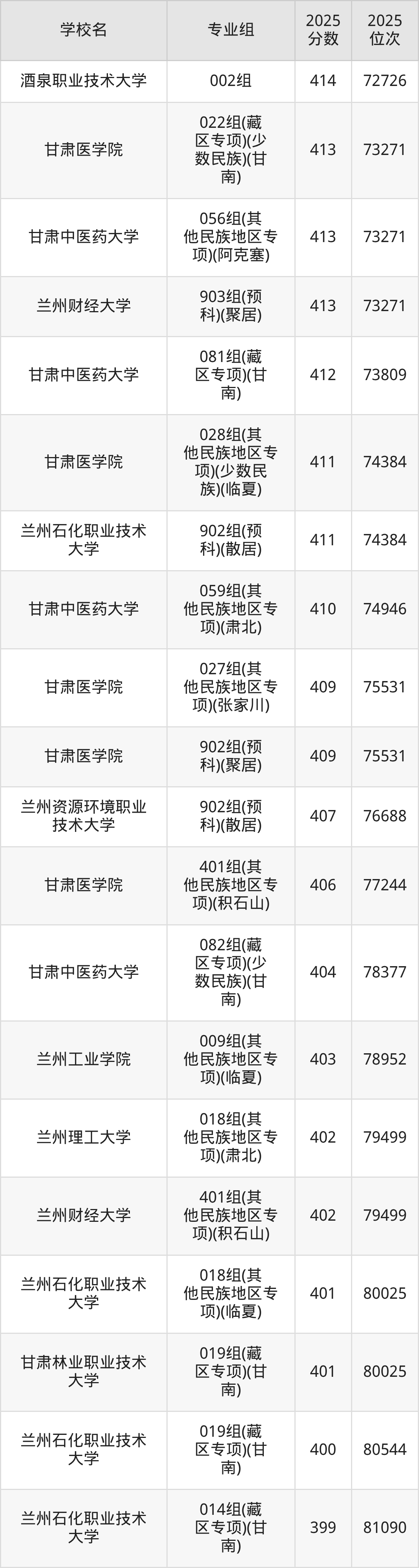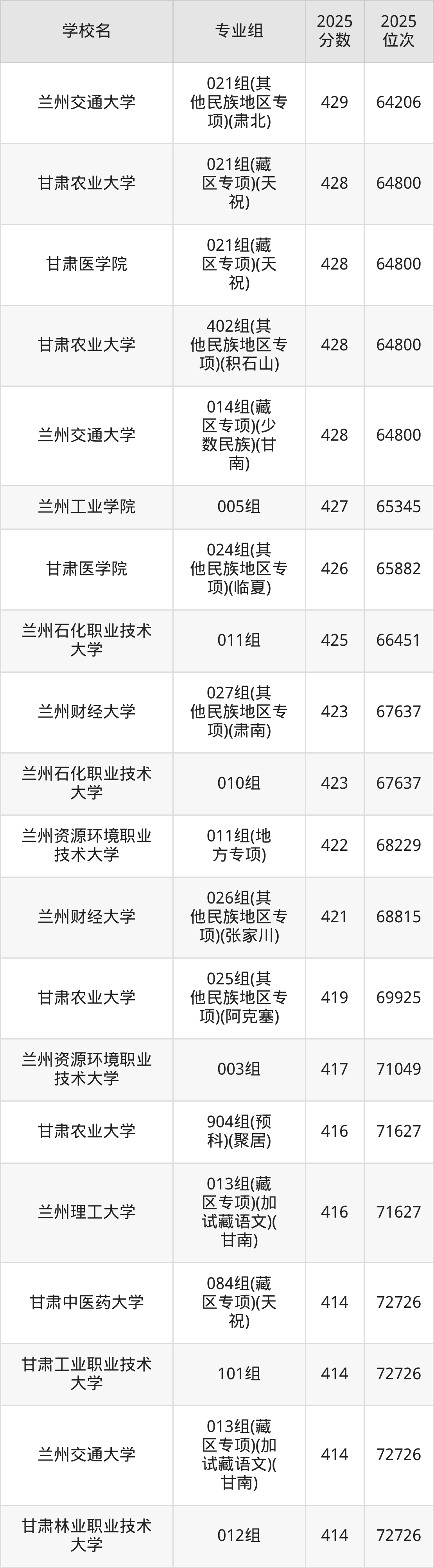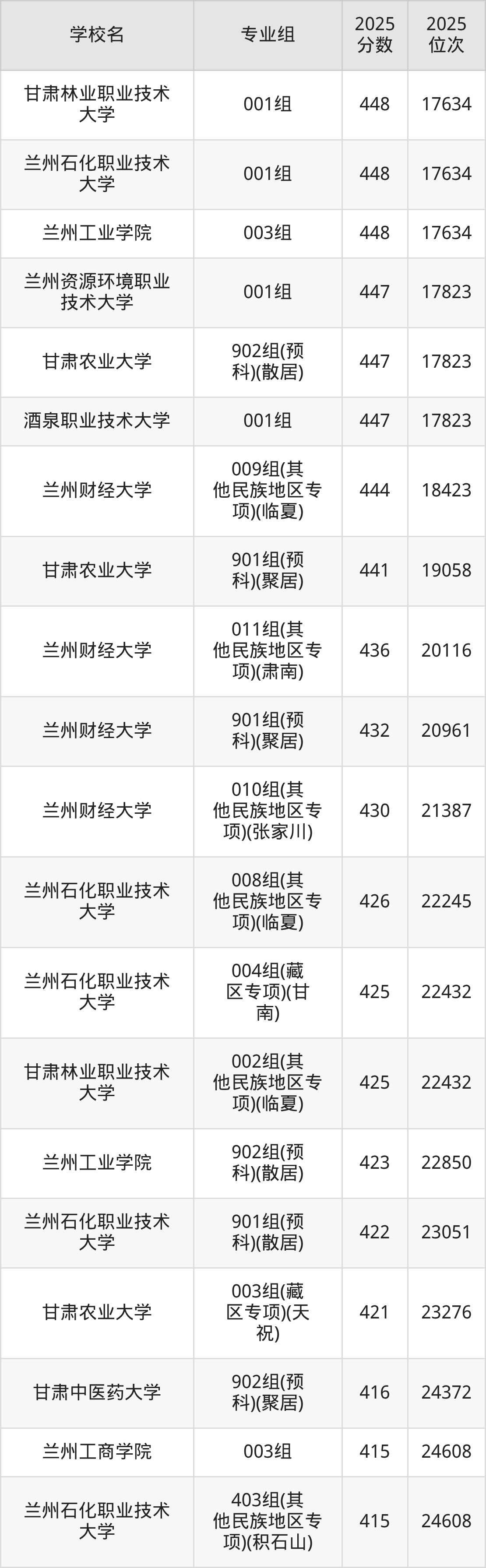 | 兰州工业学院 | 416 |