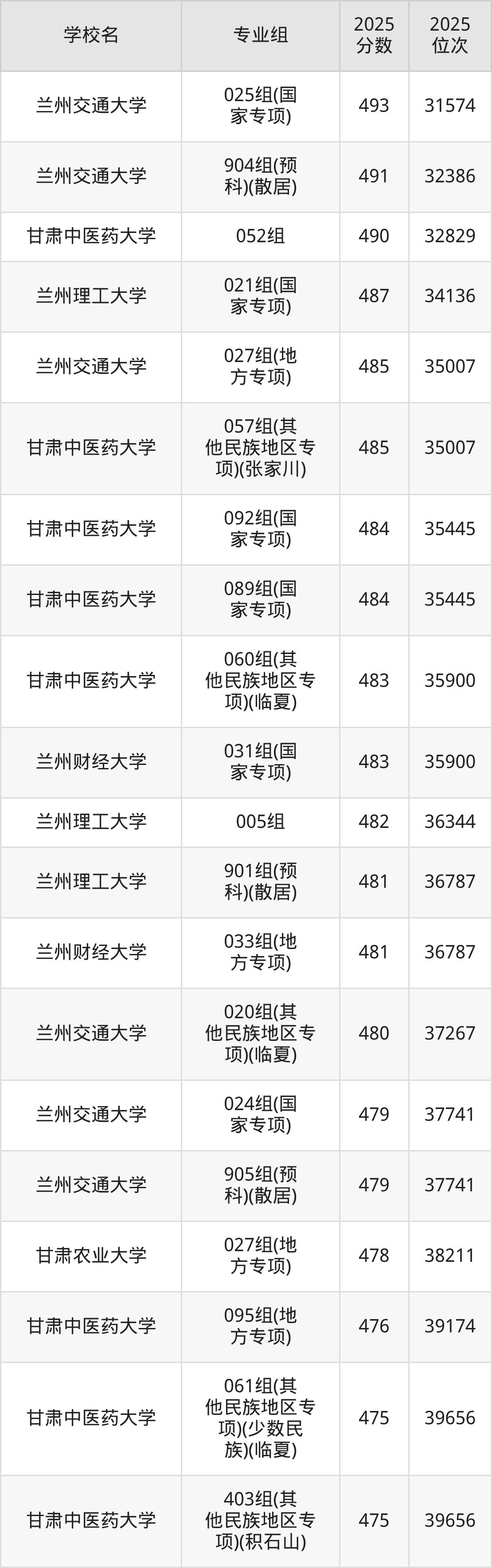 | 甘肃医学院 | 500 |