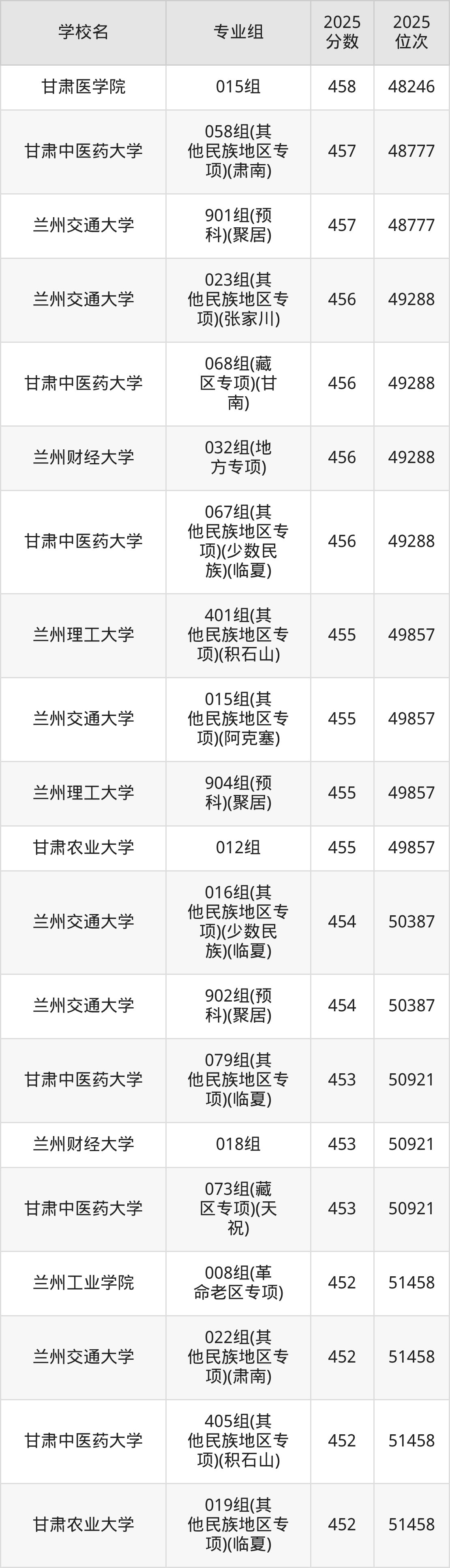 一、甘肃理科大学排名表
