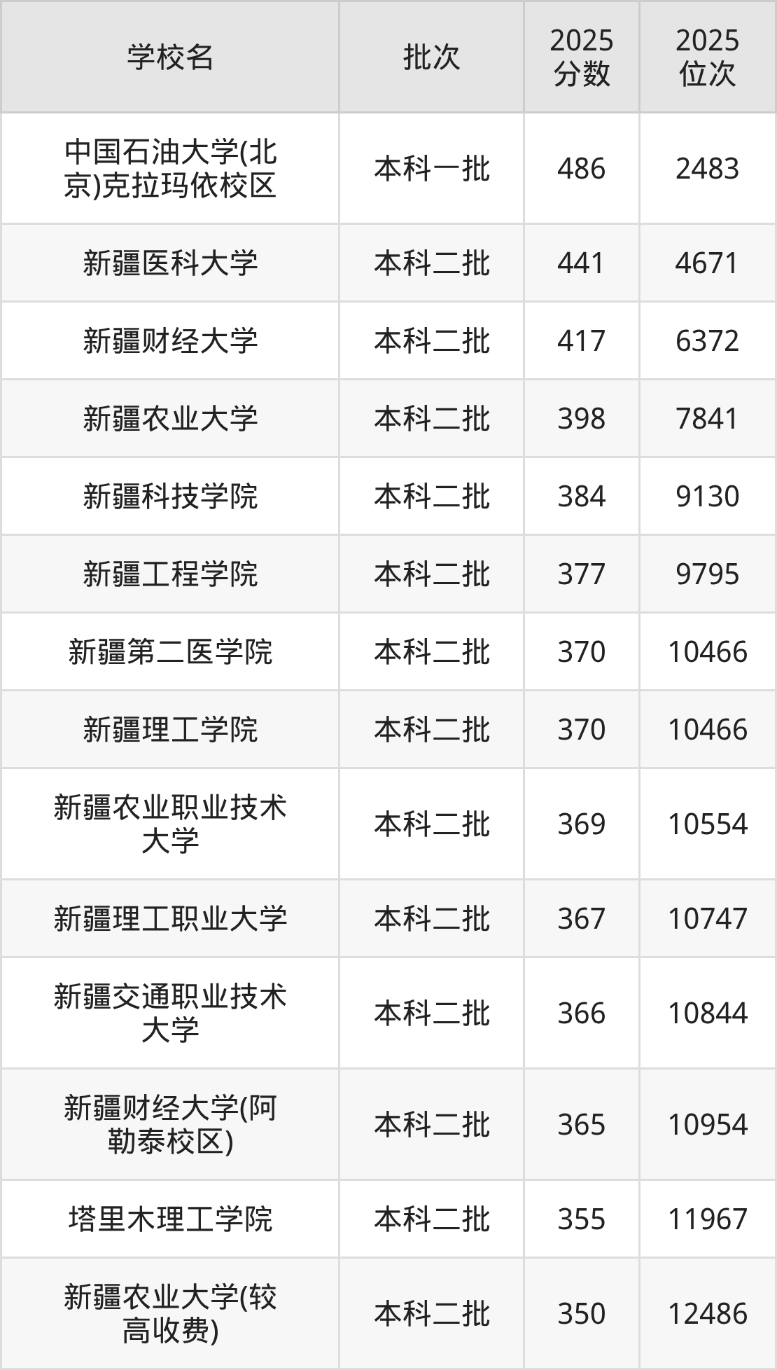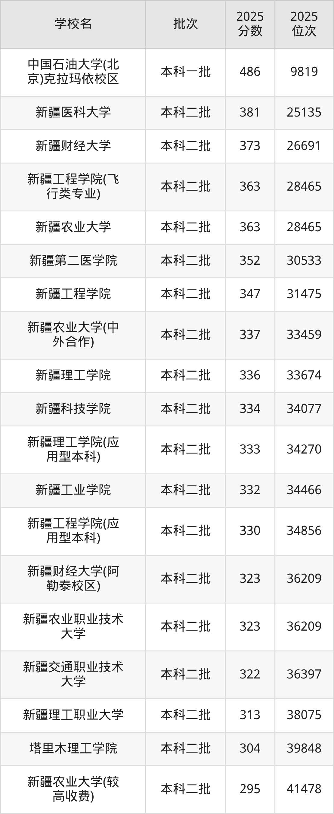 | 新疆科技学院 | 493 |