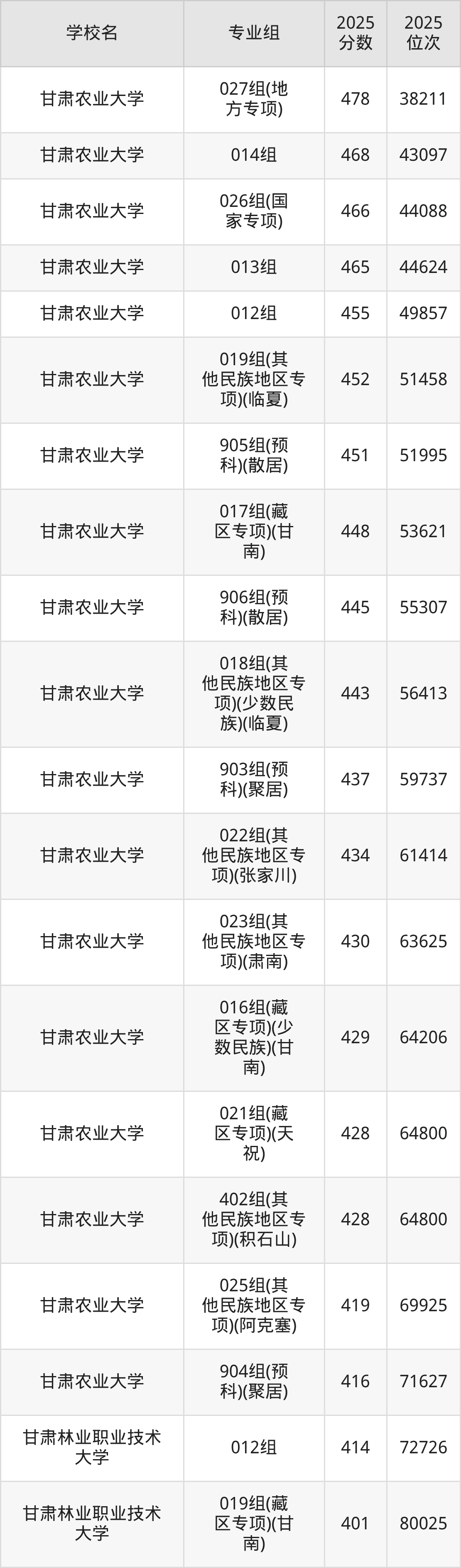 二、甘肃农林类大学录取分数线