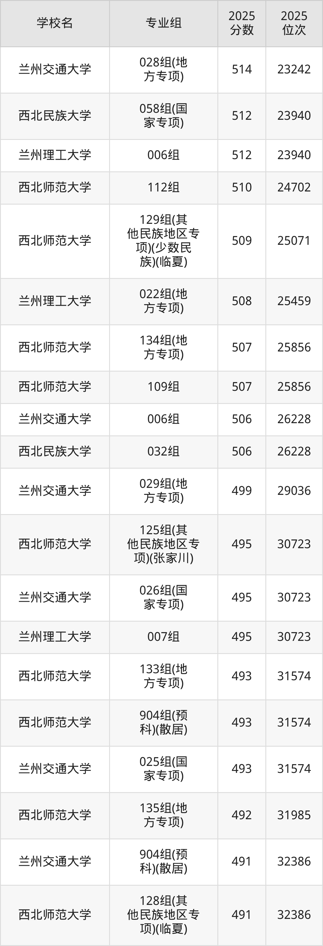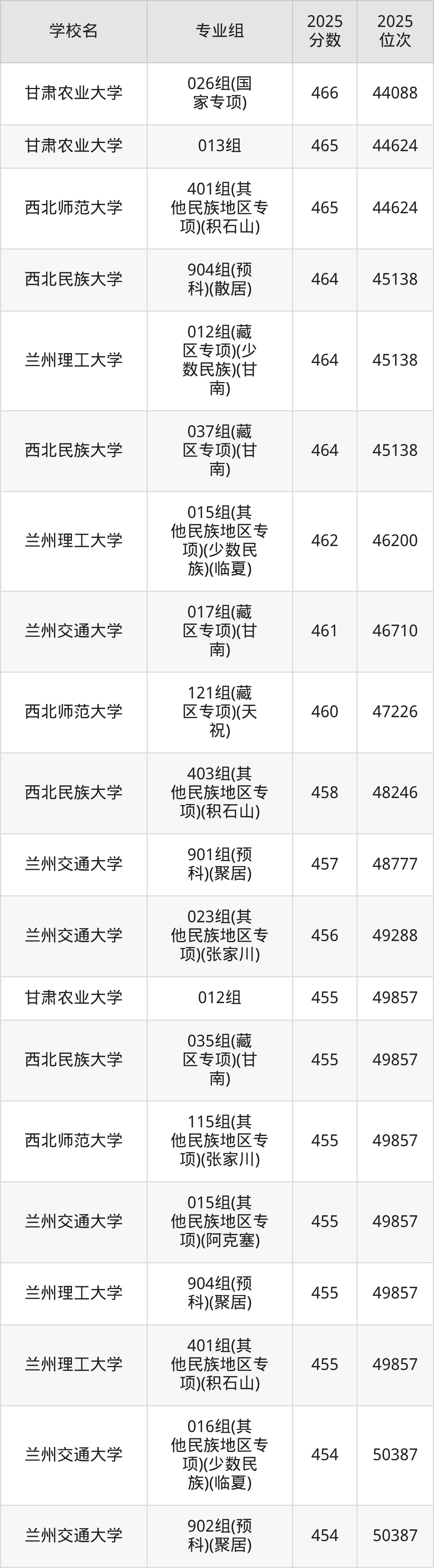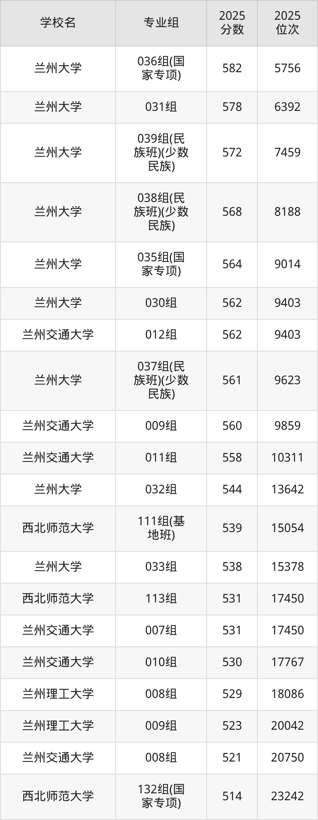 二、甘肃重点大学录取分数线