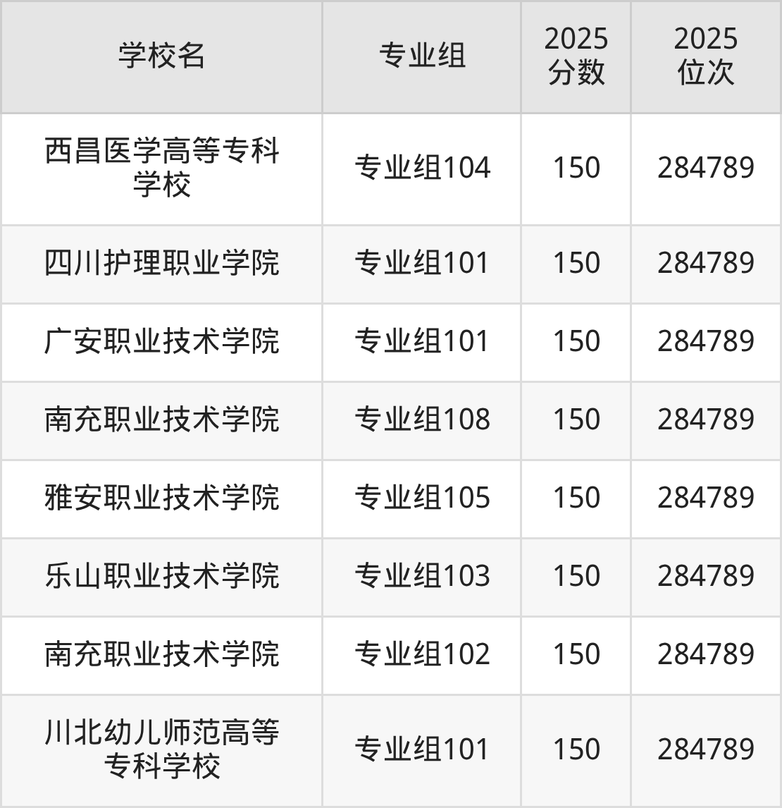 | 南充职业技术学院 | 506 |