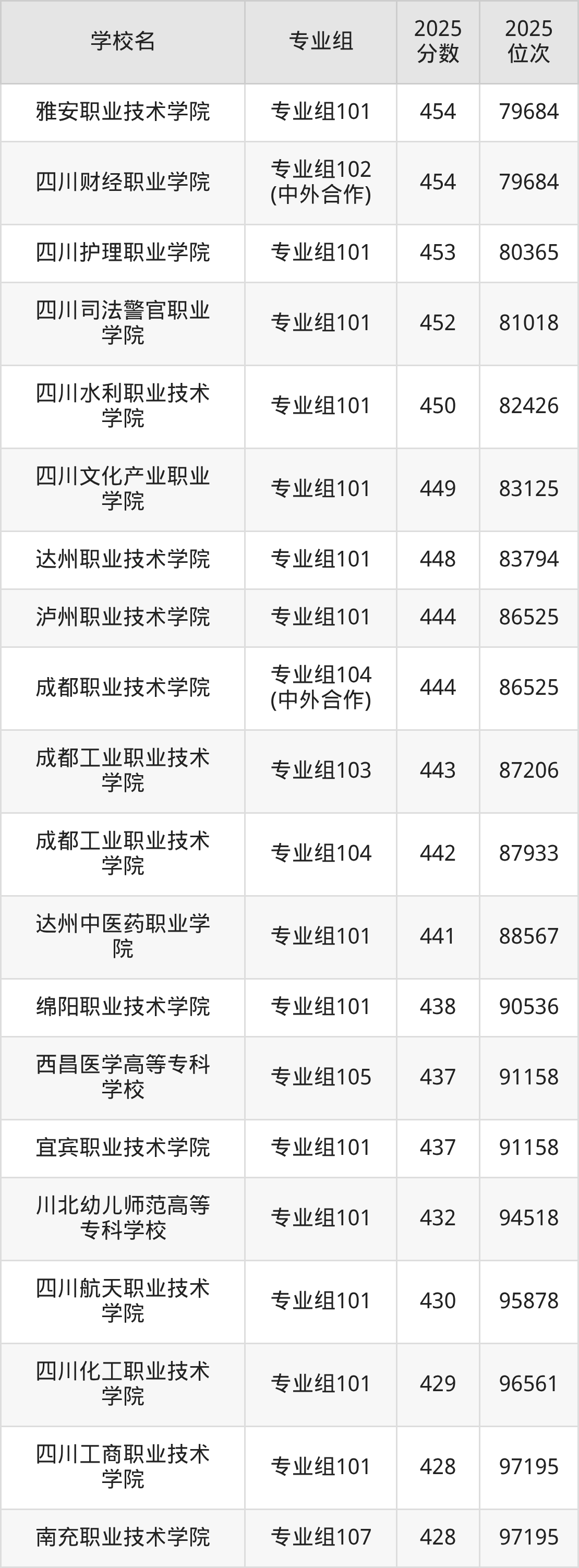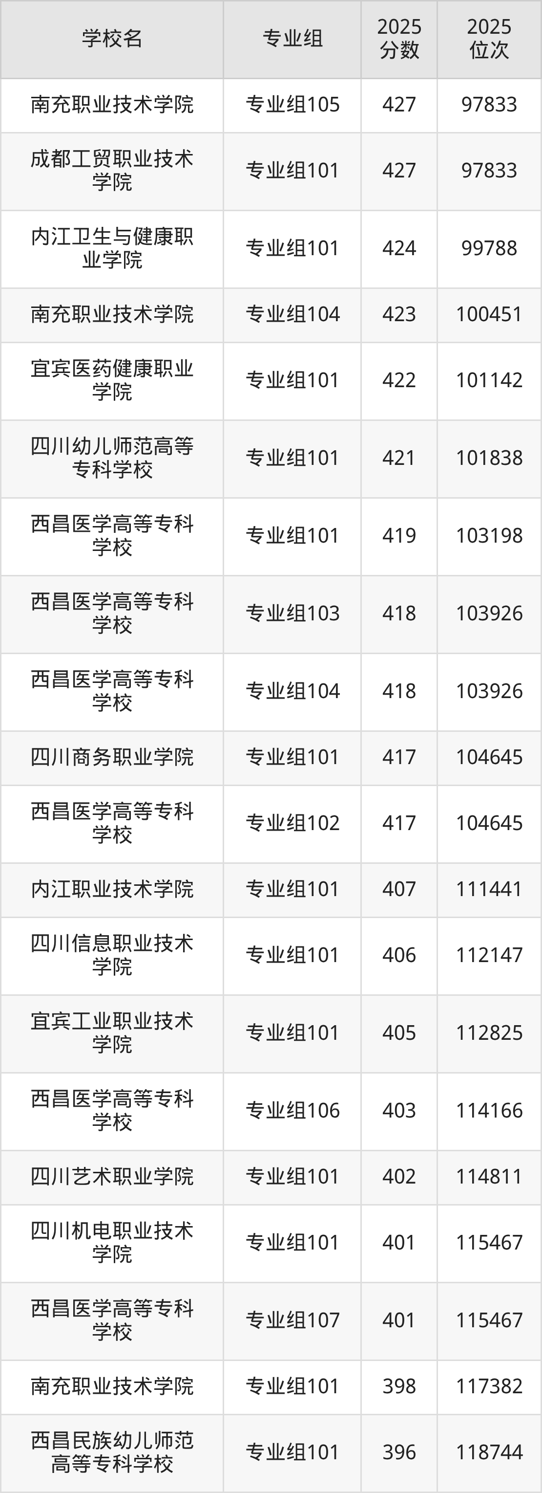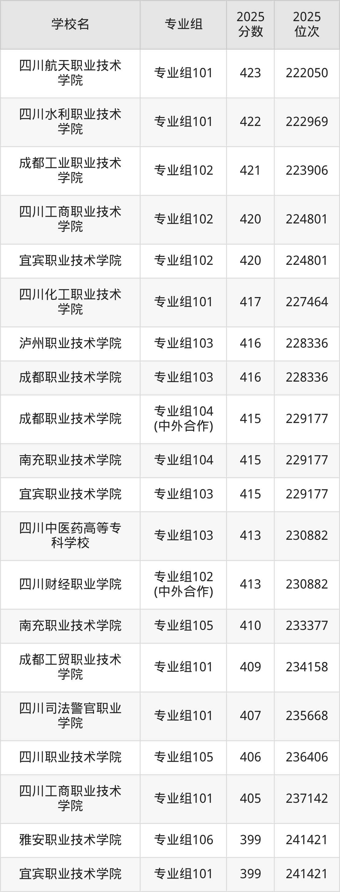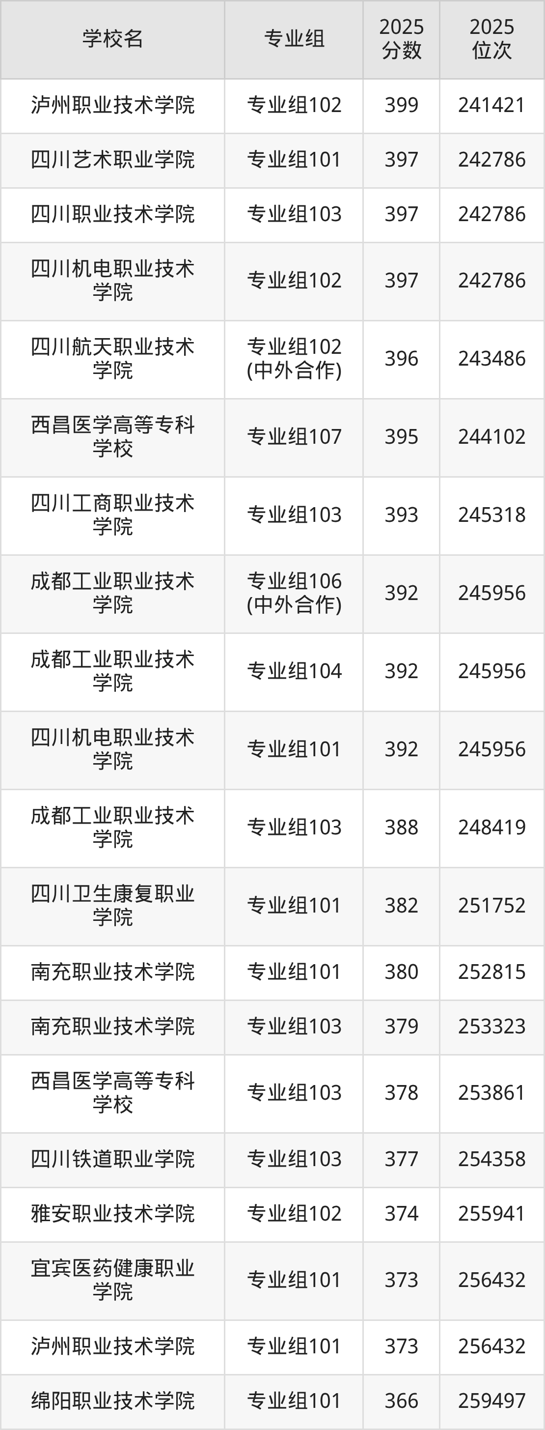 | 四川职业技术学院 | 382 |