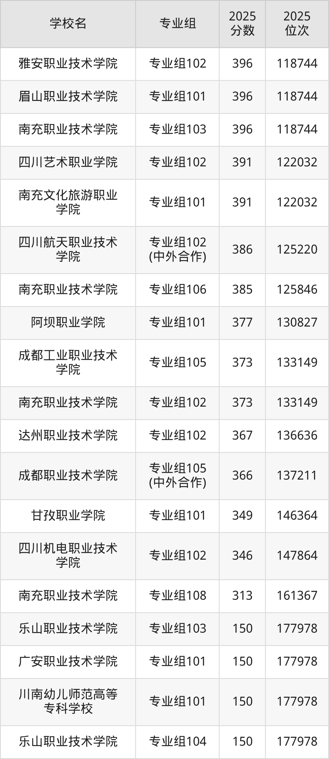 | 乐山职业技术学院 | 381 |