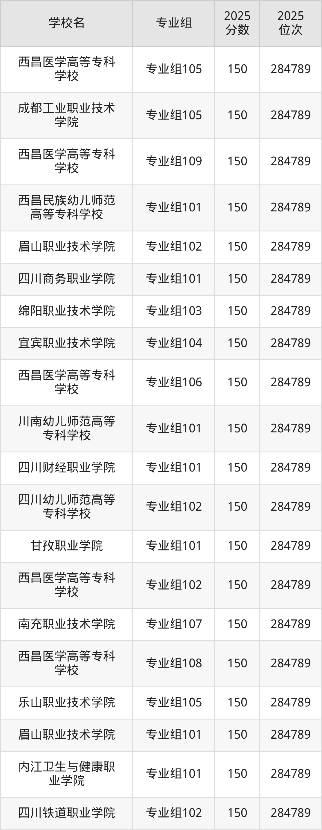 | 绵阳职业技术学院 | 154 |