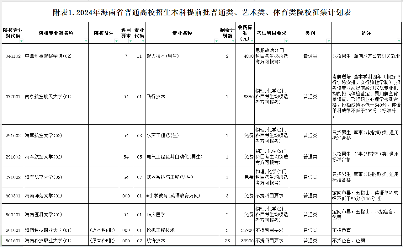不同批次征集志愿学校名单各有不同,本科其余批次待官方公布2024年海南本科征集志愿的院校名单后,本文将同步更新整理。