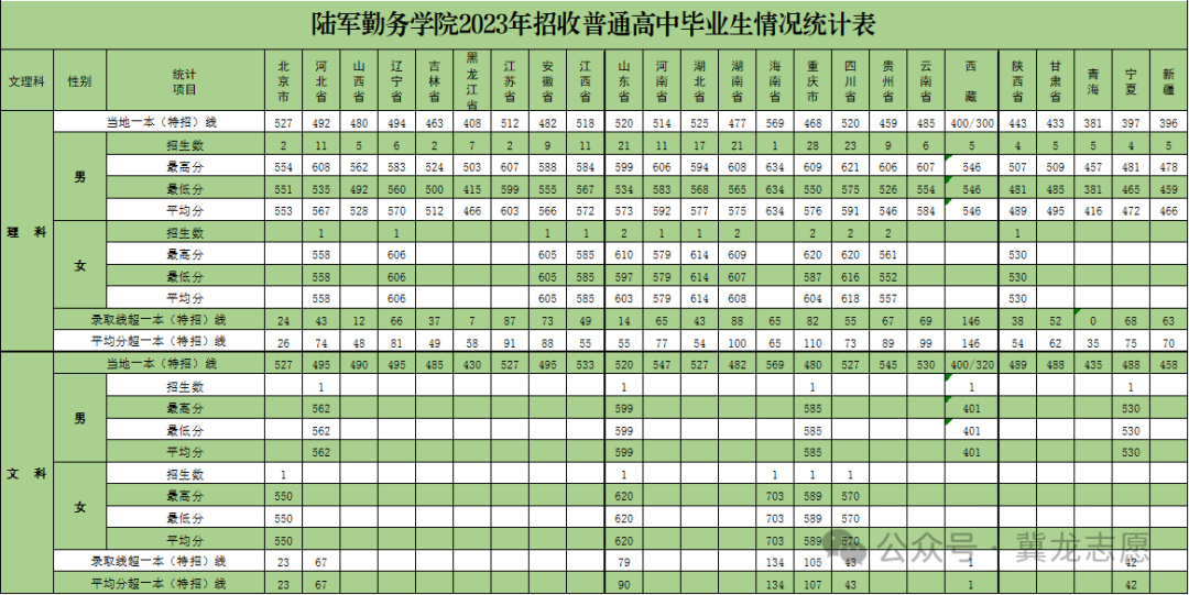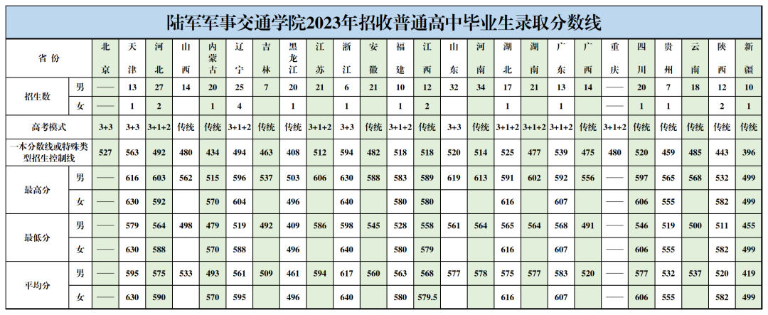 联勤保障部队工程大学是由陆军勤务学院和陆军军事交通学院合并而成,篇幅有限,以下是联勤保障部队工程大学2023年在各省提前批招生录取最低分情况,供参考:
